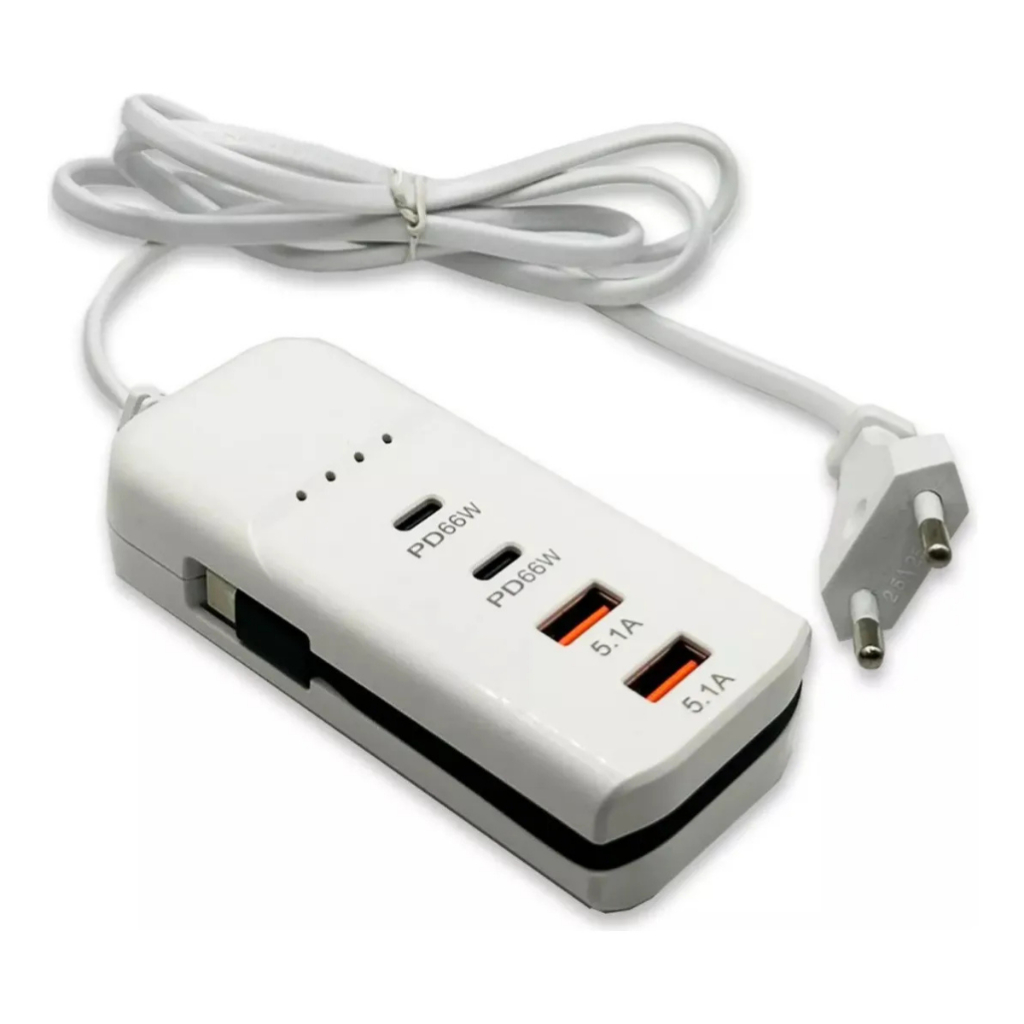 Extensão Carregador Turbo 66w Celular 2 Saídas Usb 2 Tipo C