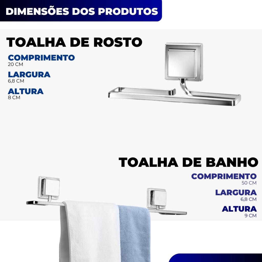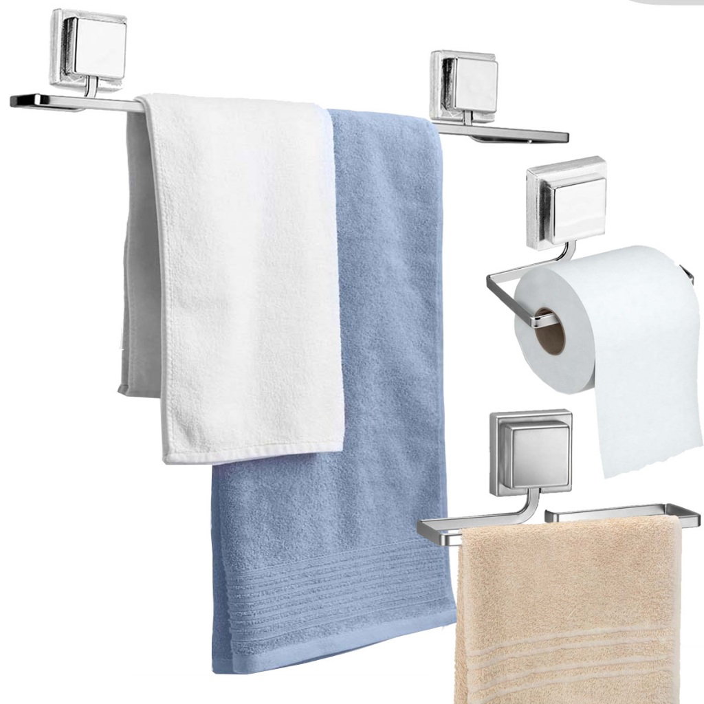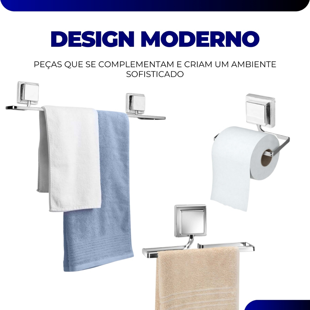 Kit Acessórios Banheiro Porta Toalha Rosto Banho Rosto Papeleira Sem Furo Adesivo 3M Cromado Arthi