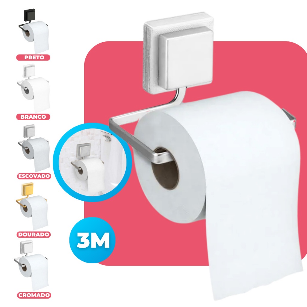 Suporte Banheiro Lavabo Porta Papel Higiênico Higenico Parede Fixação Sem Furo Dupla Face 3M Arthi