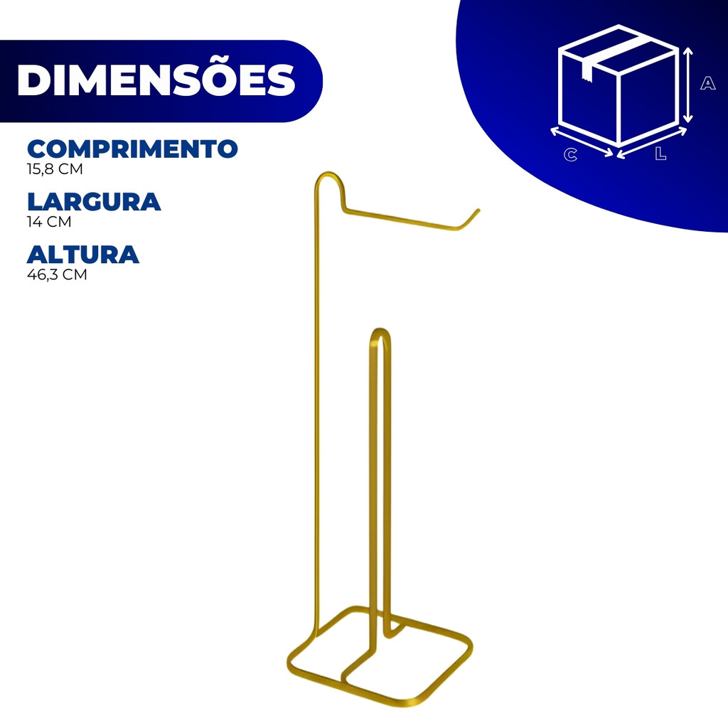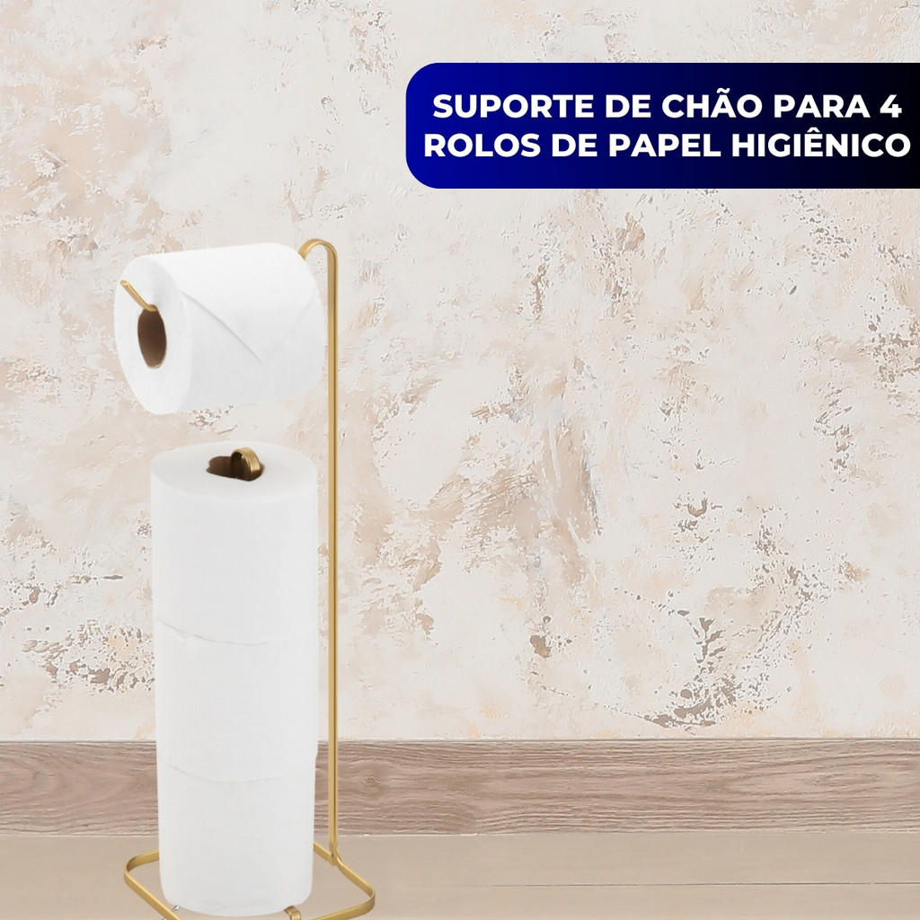 Suporte Porta Papel Higiênico de Chão Banheiro Lavabo Para 4 Rolos Piatina Dourado Gold Arthi