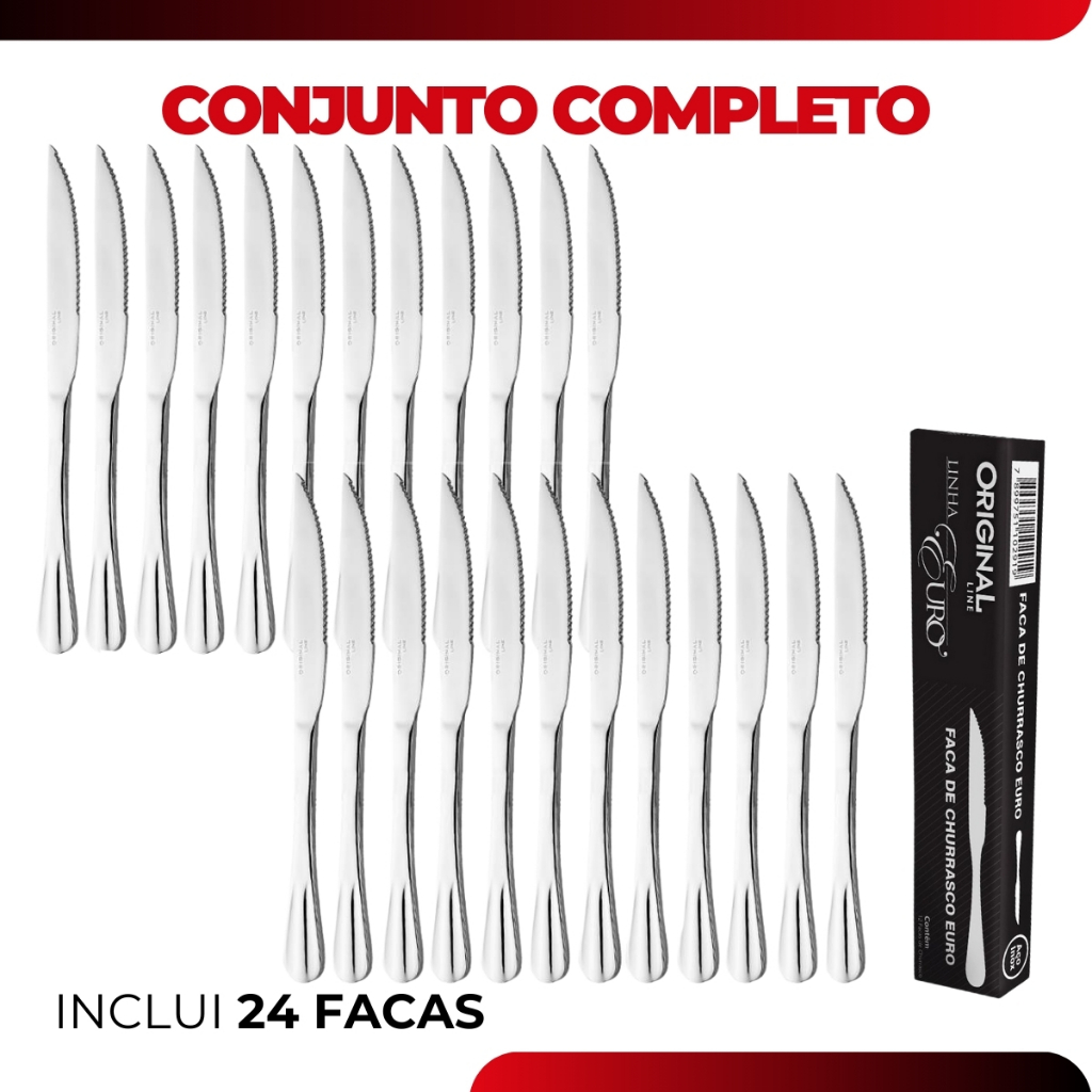Jogo Aco Inox 48 Facas Churrasco Buffet Restaurante Lanchonete Euro Linha Premium Original Line