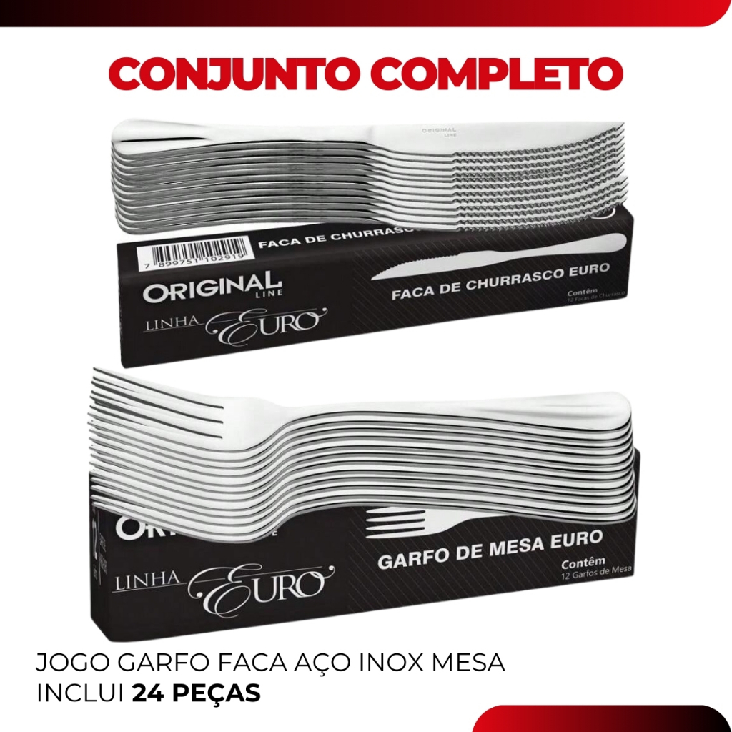 Kit 12 Garfo 12 Faca Aço Inox Mesa Restaurante Buffet Euro Premium Alta Qualidade Original Line