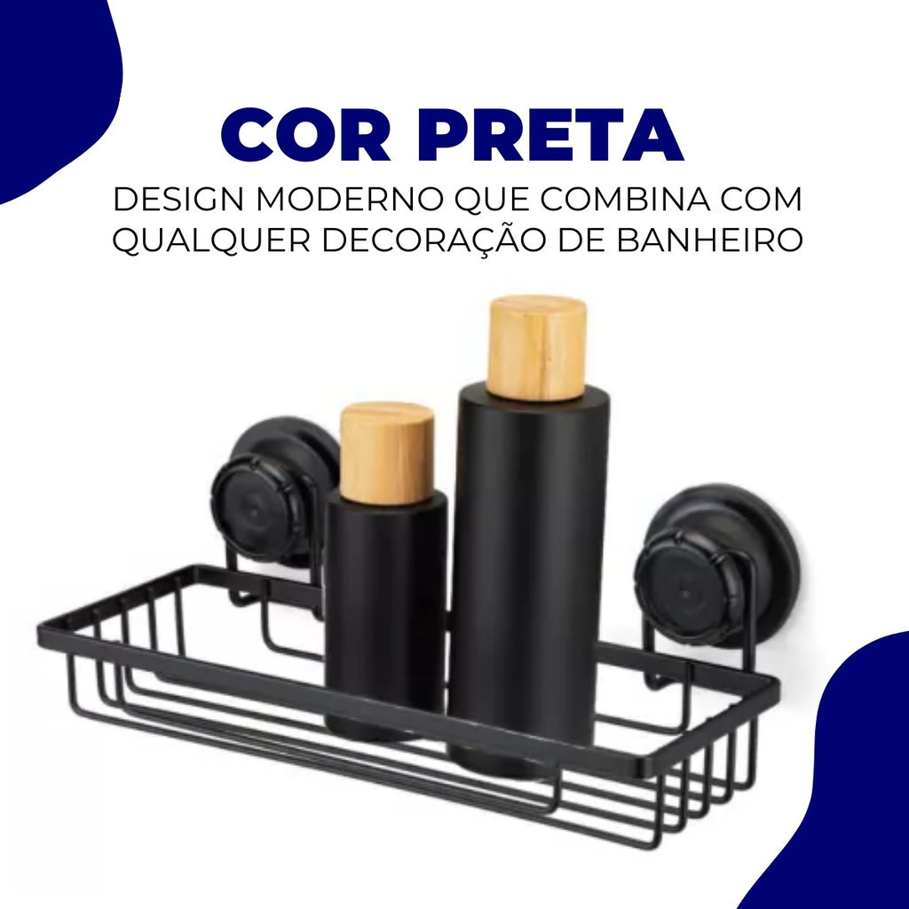 Porta Organizador de Shampoo de Parede Prateleira Azulejo Fixação Sem Furo Ventosa Metal Preto Arthi