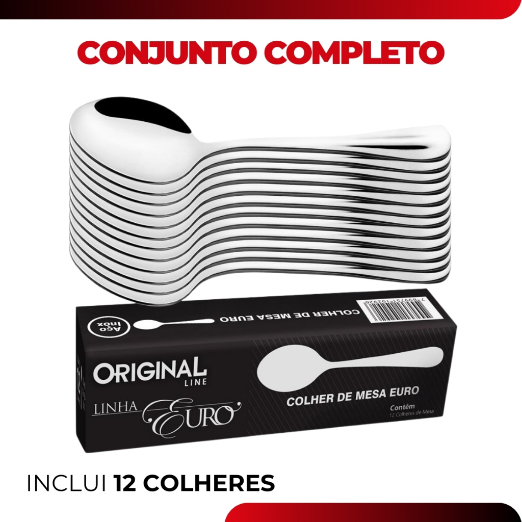 Jogo Aco Inox 12 Colher Sopa Linha Premium Buffet Restaurante Lanchonete Euro Original Line