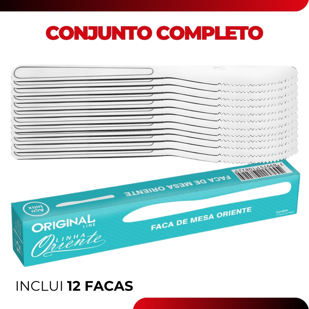 Kit Jogo 12 Facas Mesa Sopa Buffet Restaurante Lanchonete Aço Inox Linha Oriente Original Line
