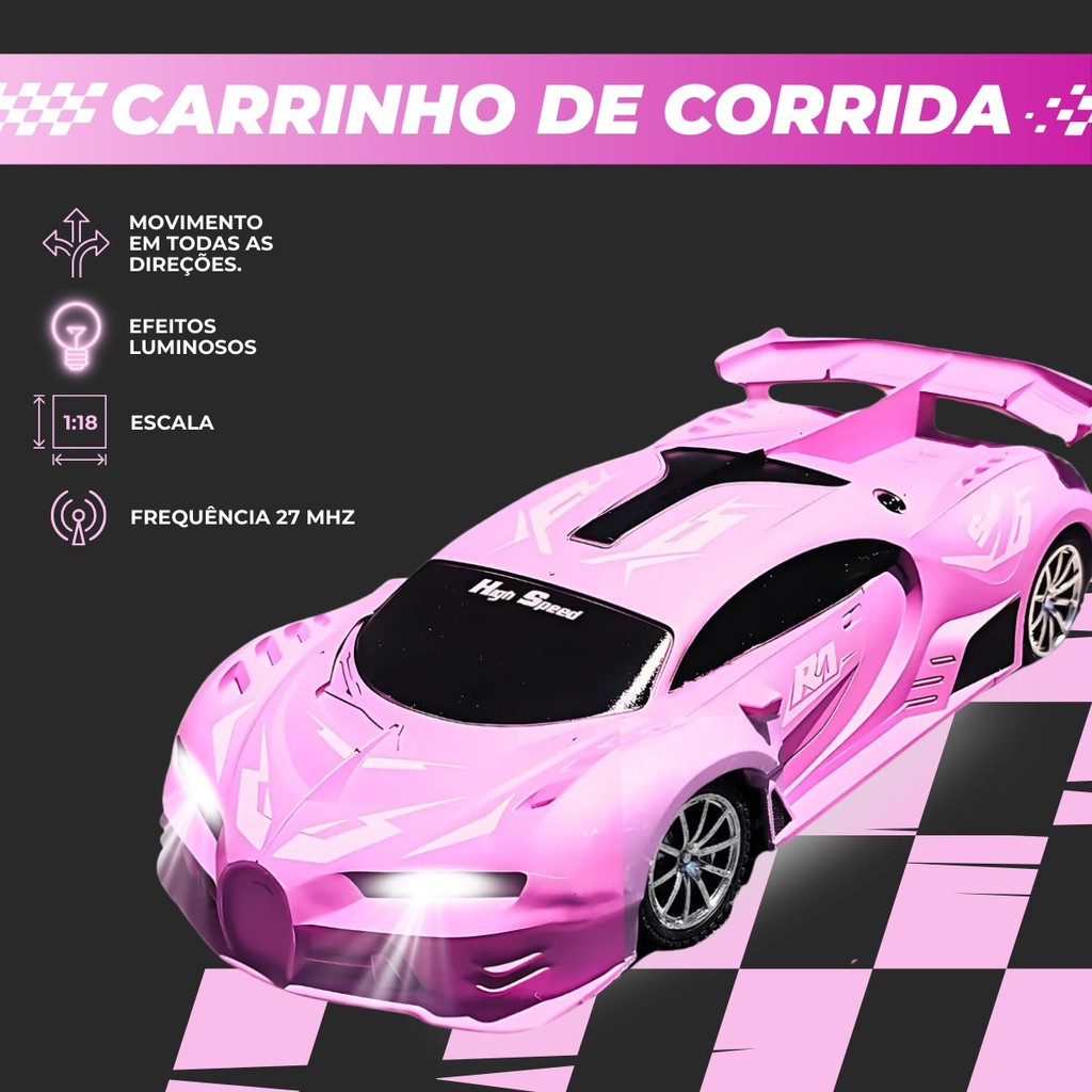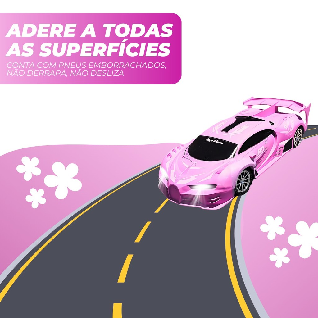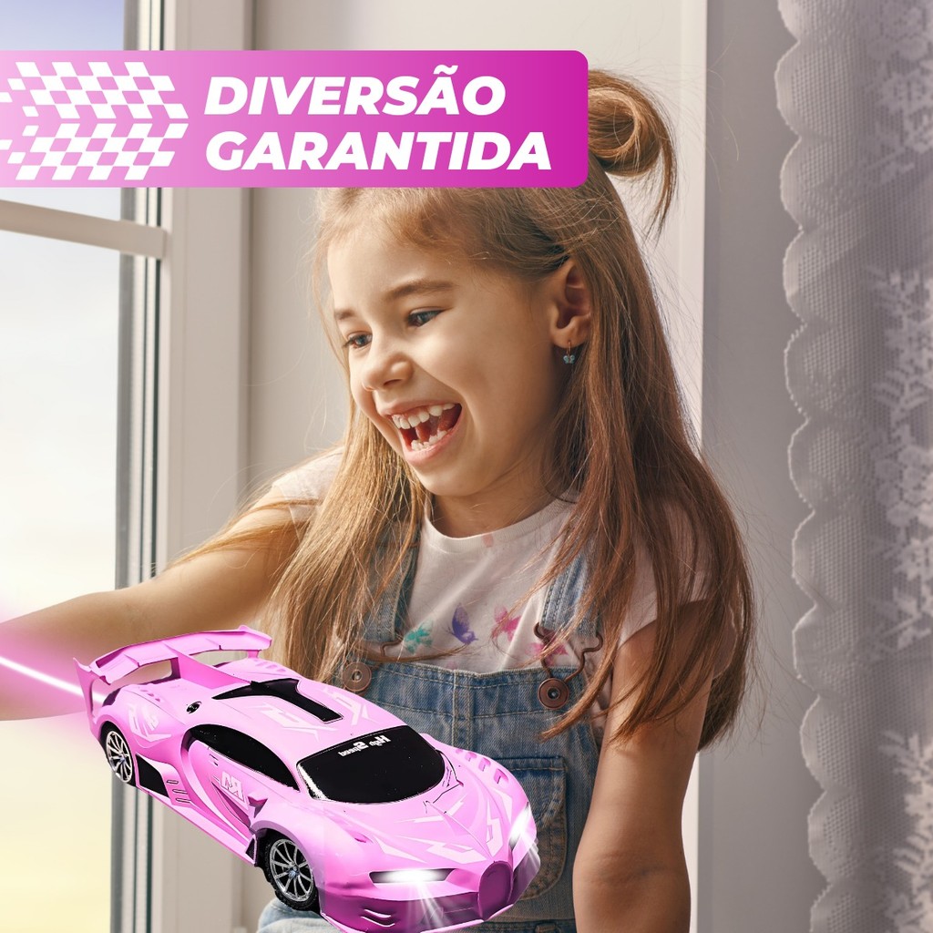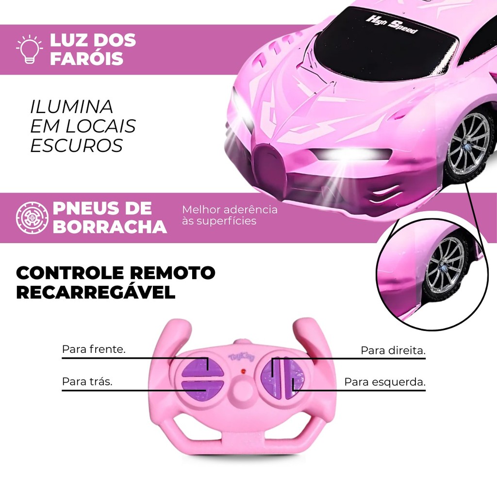 Carrinho De Controle Remoto Drift Brinquedo Corrida Veloz Com Luz Recarregavel Rosa Menina Kizumba