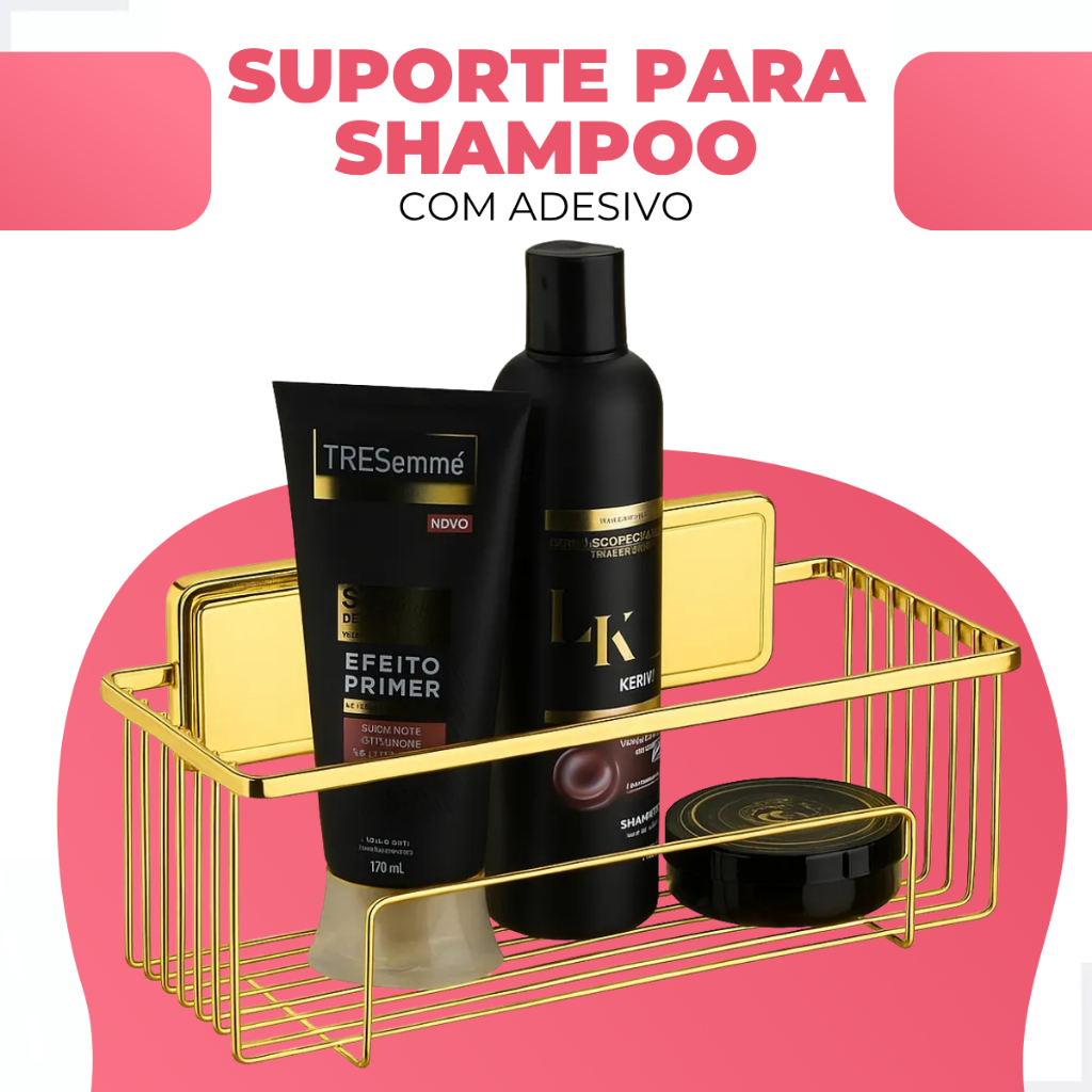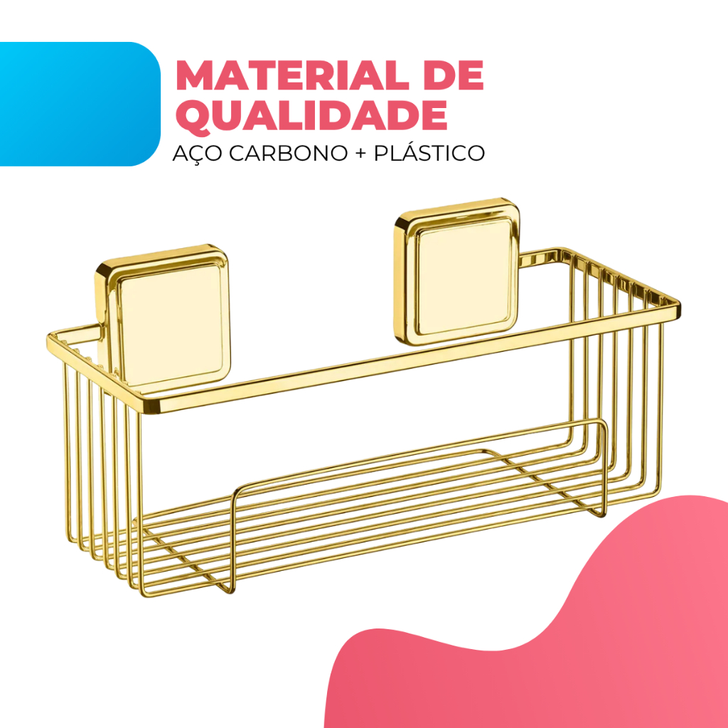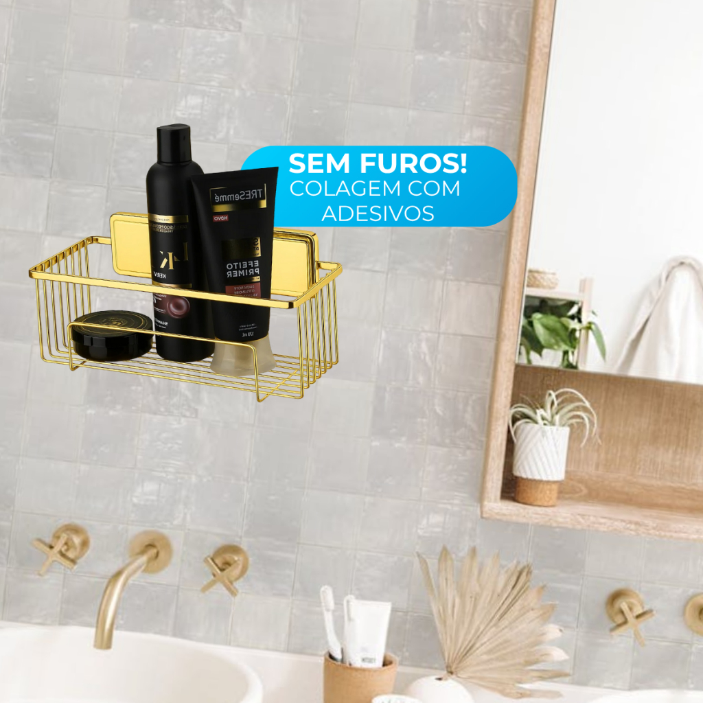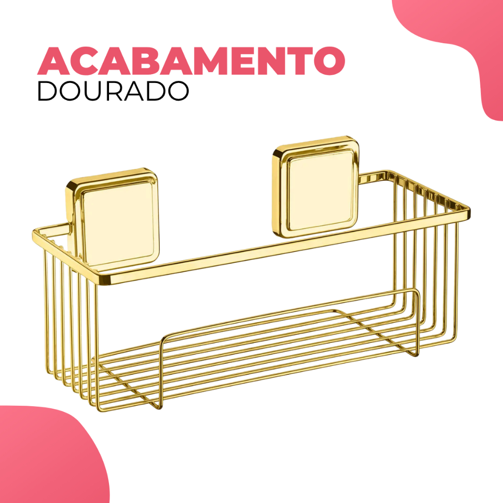 Suporte Porta Shampoo Organizador Banheiro Box Aramado Aplicação Dupla Face Sem Furo Dourado Future