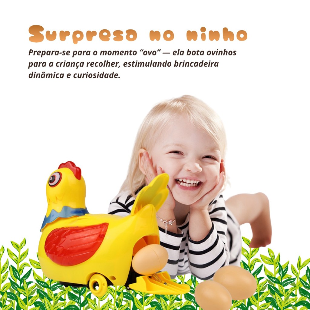 Galinha Robô Infantil Anda Bota Ovos Com Luz Som Brinquedo Presente Educativo Amarelo Kizumba
