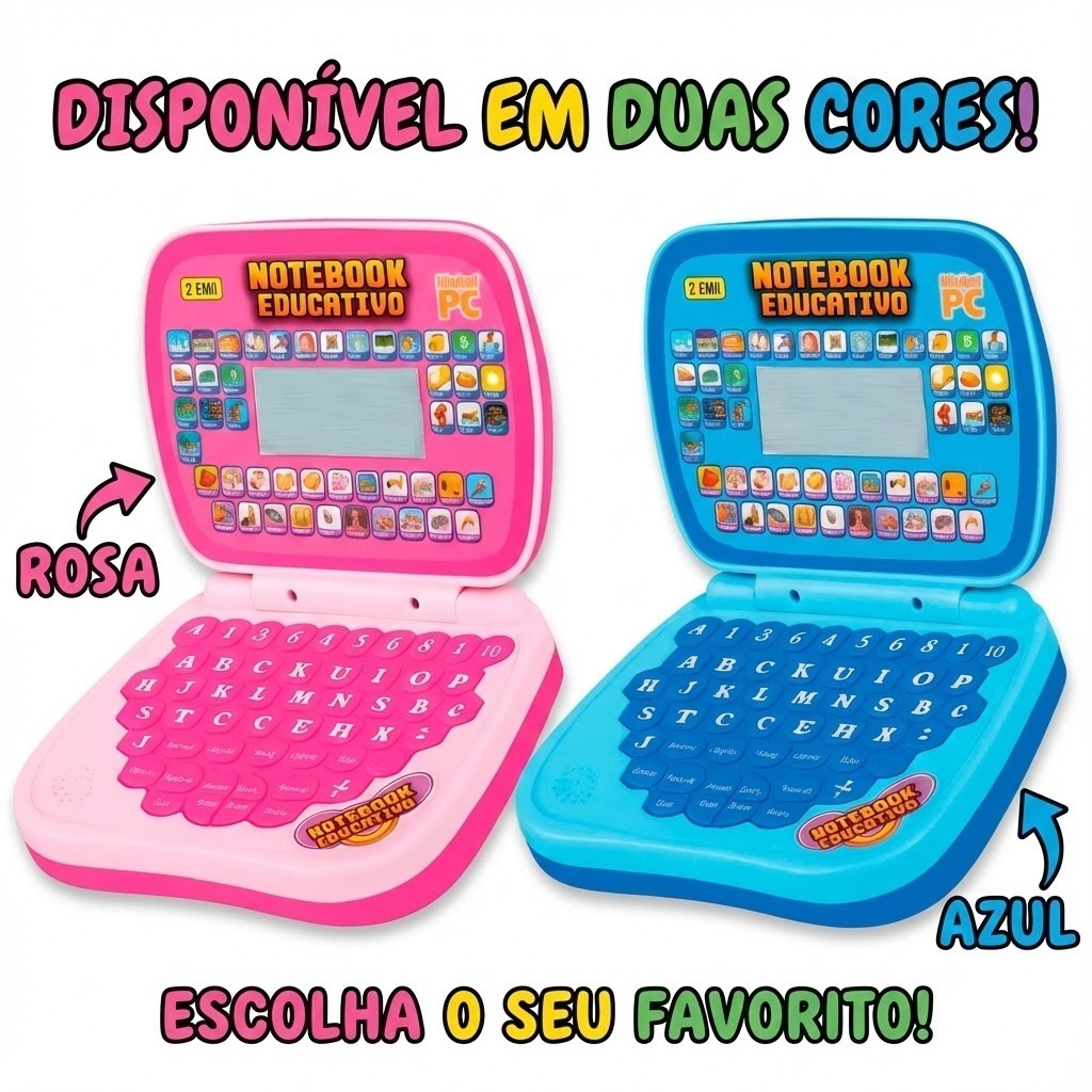 Laptop Notebook Infantil Educativo Menino Menina Estudo Bilingue Inglês Português Notebook Kizumba