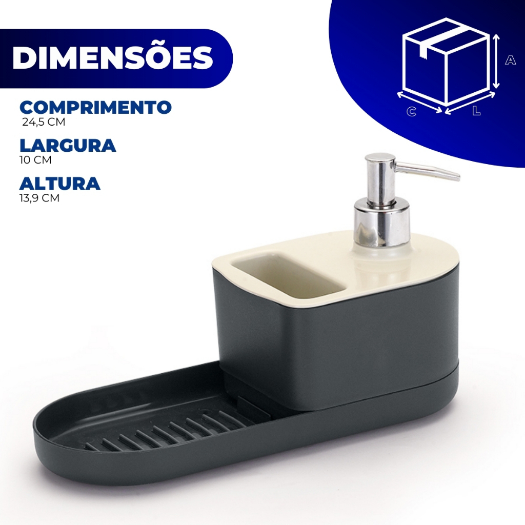 Dispenser Detergente Suporte Porta Bucha Esponja Sabao Pia Cozinha Lavanderia Cinza Arthi