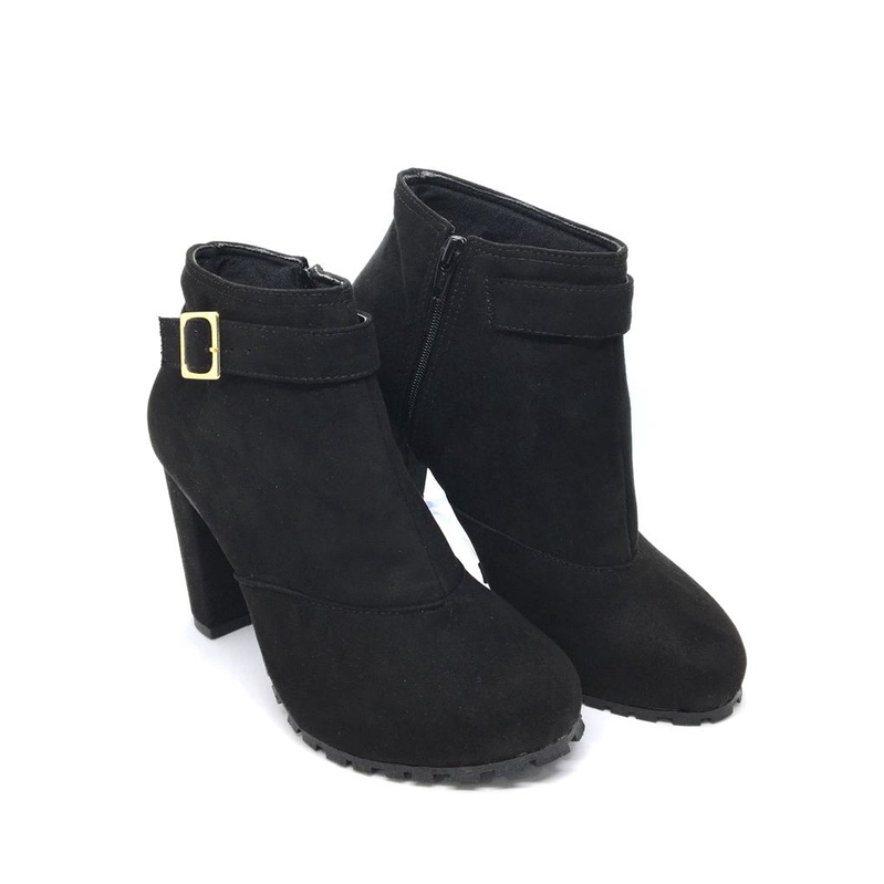 Bota Feminina Melf Shoes Cano Baixo Preto Salto Bloco 9cm