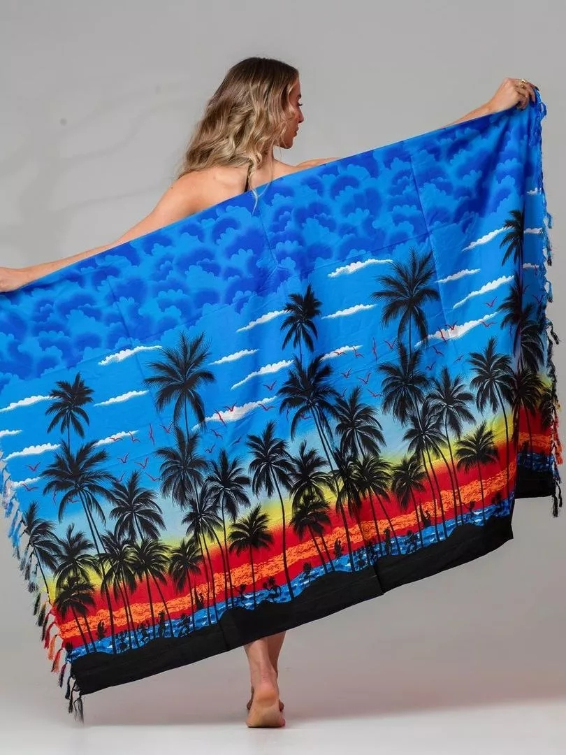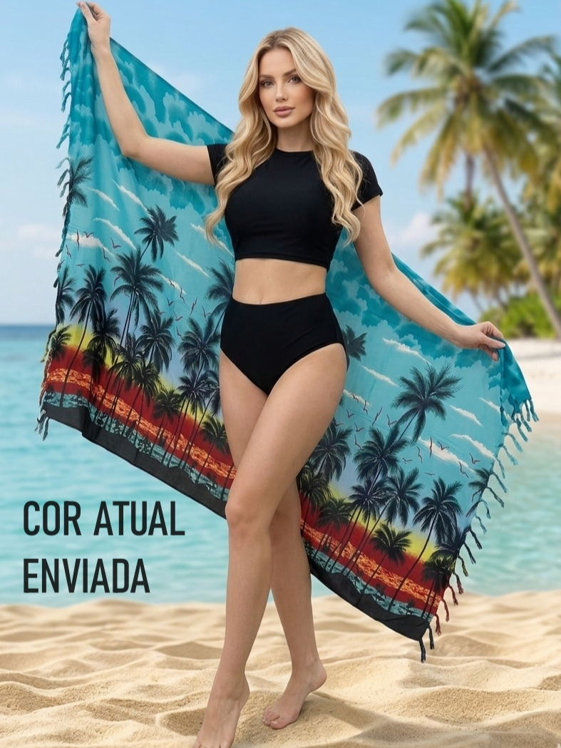 Canga de praia estampa coqueiros 1,80x1,10 saída de praia e banho de poliéster Canga indiana Grande Original da India