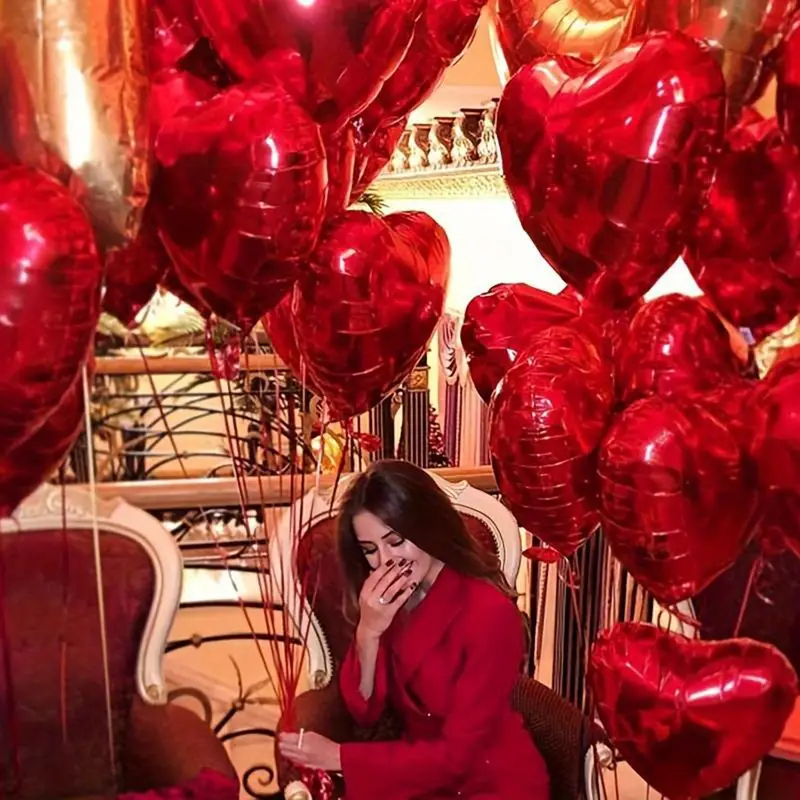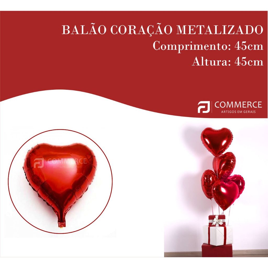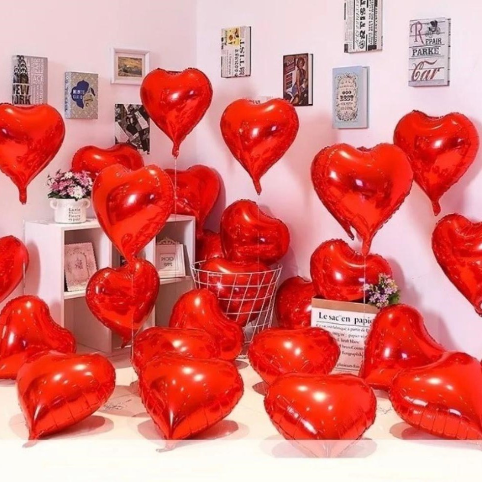 20 Balões Coração Metalizado Vermelho 45cm