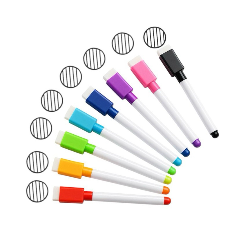 15 Canetas Para Quadro Branco Com Apagador e Imã- Tinta Preta Ou Colorida