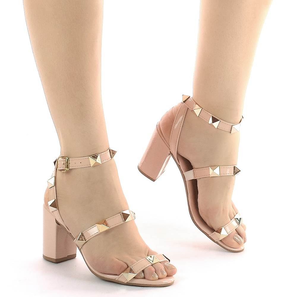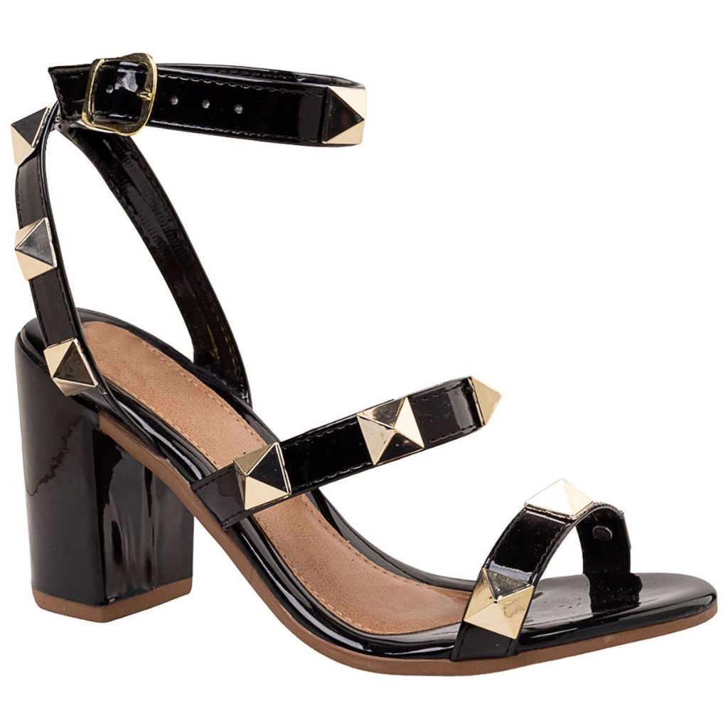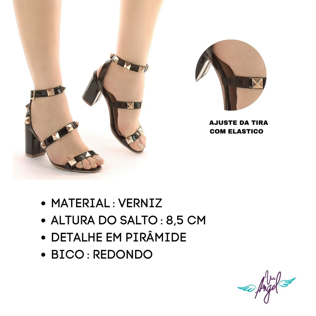 Sandália Feminina Salto Alto Bloco Festa Social Moda Pirâmide Confortável Pedraria Via Angel 52.01