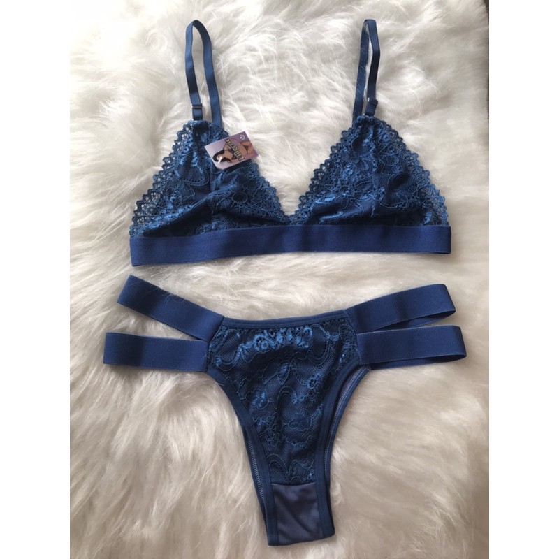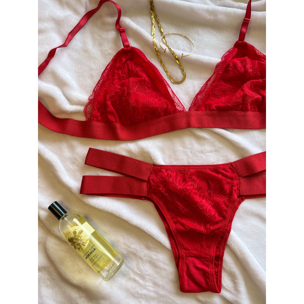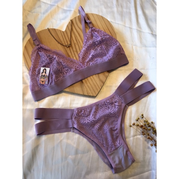 Conjunto Sem Bojo Calcinha Sutiã Strappy Tira Renda Modinha Lingerie
