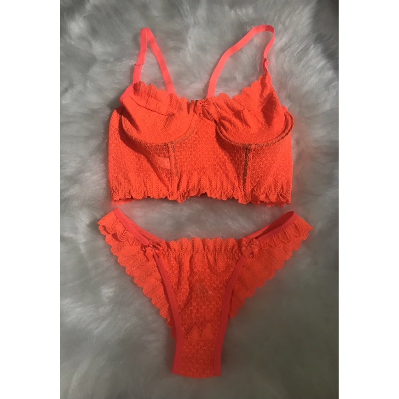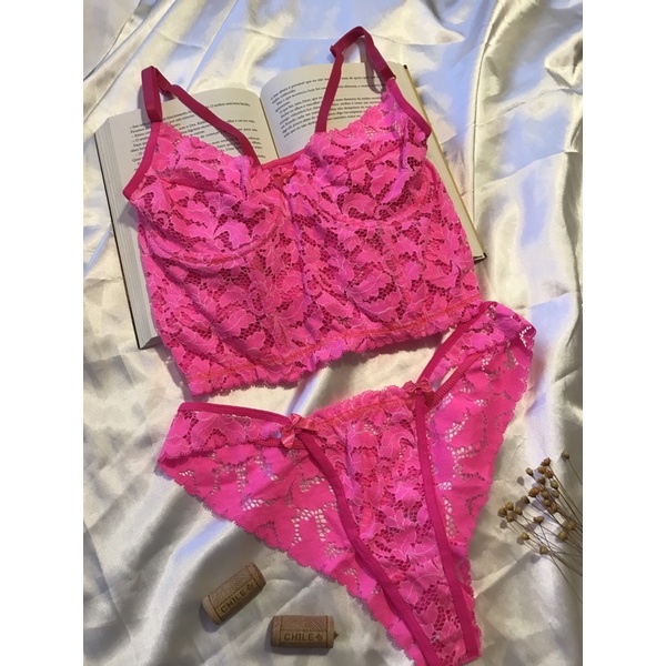 Conjunto Cropped Meia Taça Neon Calcinha Renda Sutiã sem Bojo Compridinho Verão Moda Lingerie Modinha Blogueira