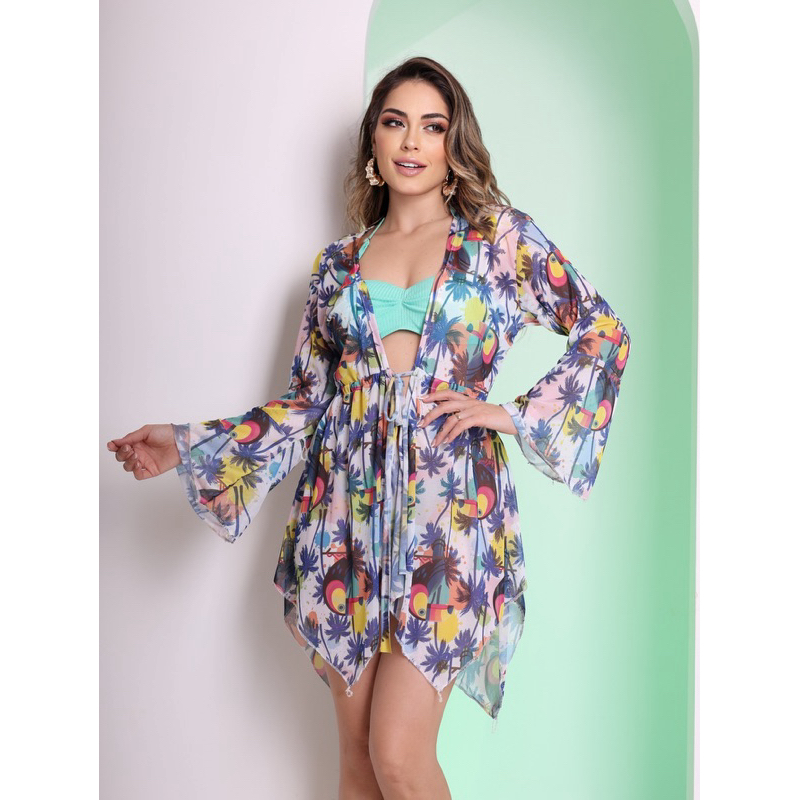 Saida de Praia estampa Pareô Curta com Babado