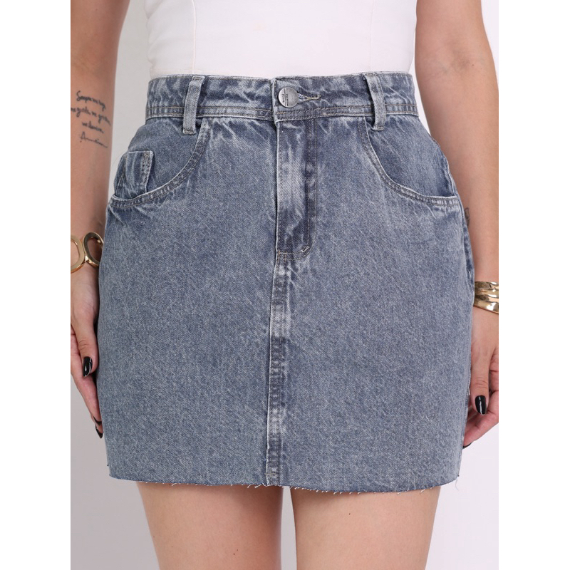 Saia Jeans Feminina Cintura Alta saia midi saia colorido sem rascada 8156