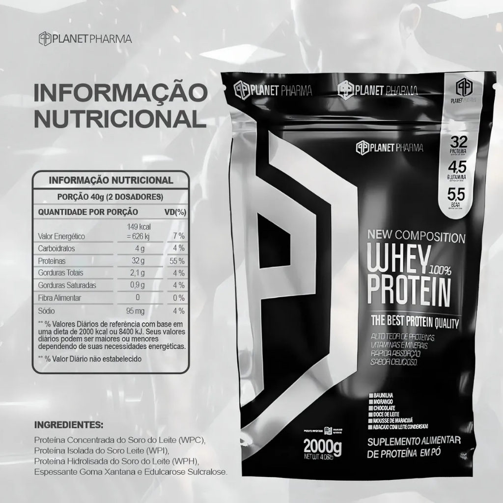 100% Whey Protein 2kg 32g Proteína / Dose - Planet Pharma