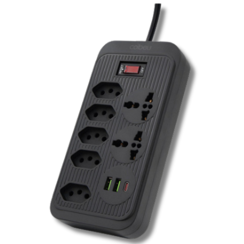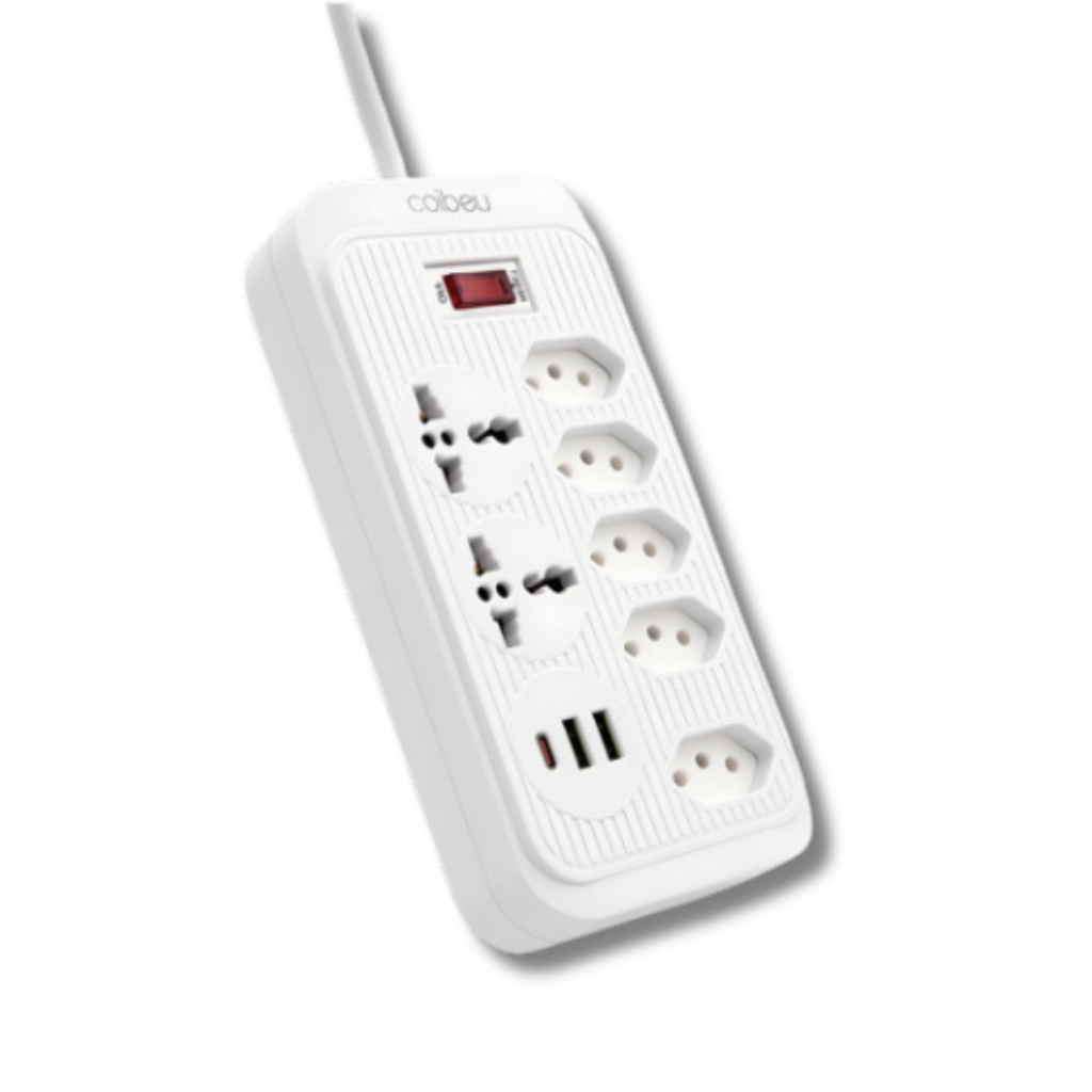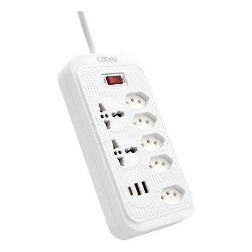 Extensão 5 Tomadas Bivolt com 2 USB, 1 PD, 2 Universais, LED e Proteção contra Sobretensão para Casa