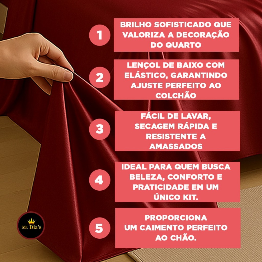 Lençol Cetim 4 Peças Com Tecnologia Anti-Frizz Casal Padrão Queen King Size Elasticado Bilho Ativo