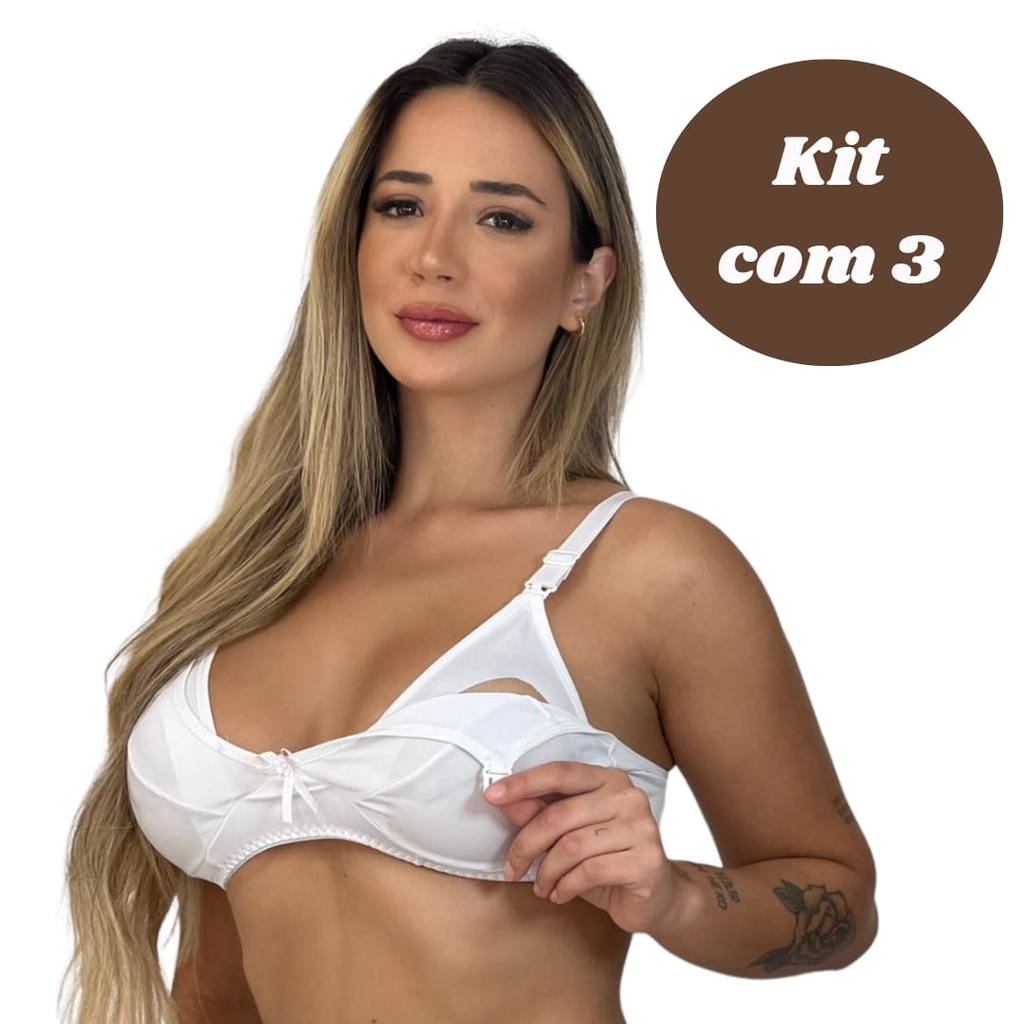 kit 3 Sutiã Para Amamentação em Microfibra de Poliéster pós parto maternidade tic tac