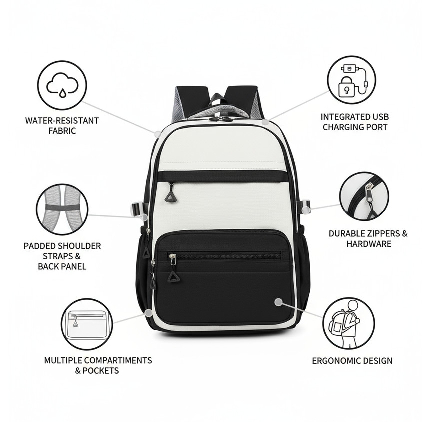 Mochila Feminina Grande à Prova d'Água para Notebook 15.6 - Leve, Antichoque, Moderna