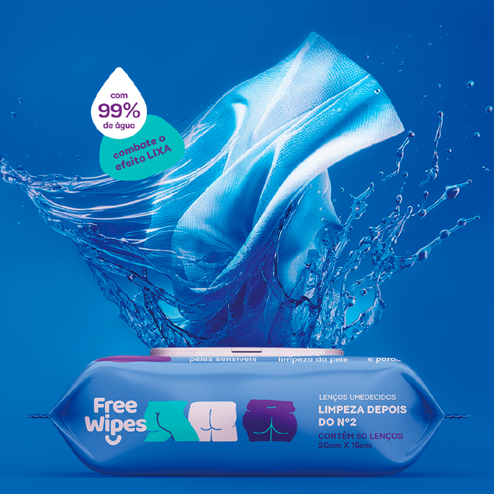 Lenço Umedecido FREE WIPES para higiene após o Nº2 - Embalagem com 50 lenços