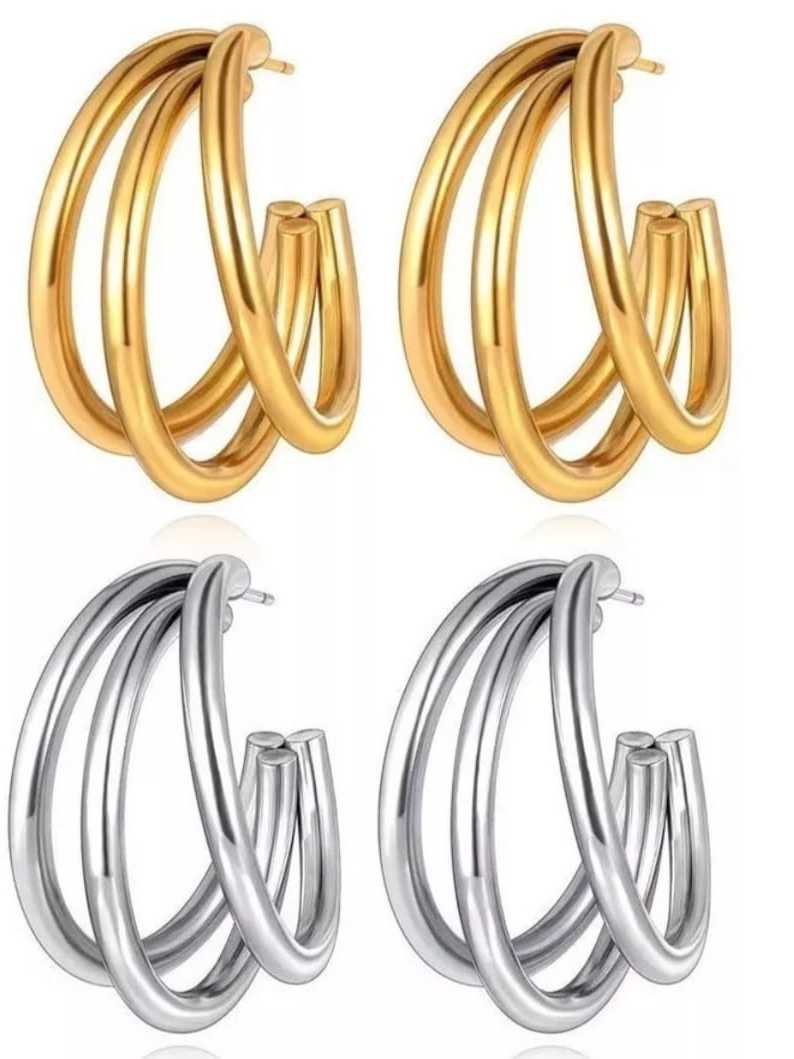 Brinco argola tripla aço inox