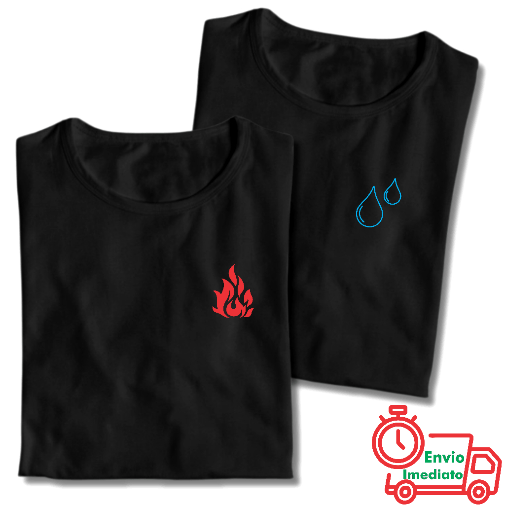Kit 2 Camisetas Casal Água e Fogo Namorados 100% Algodão