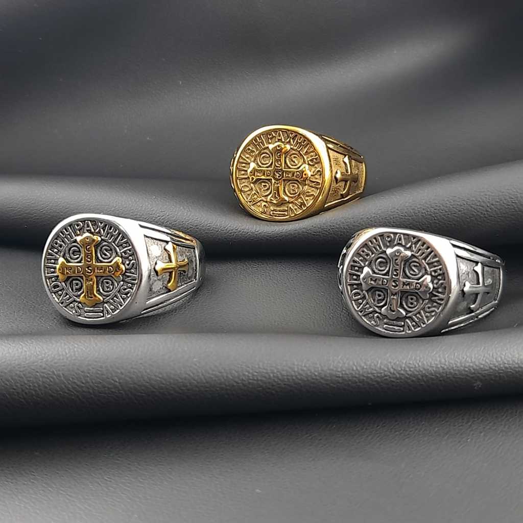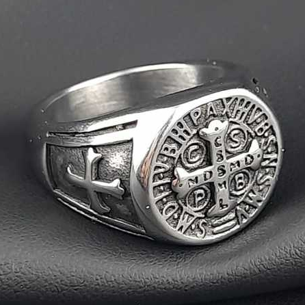 Anel São Bento Grande Alto Relevo Grande aço inox