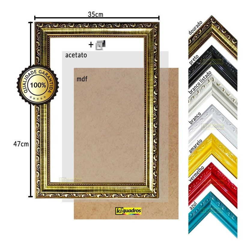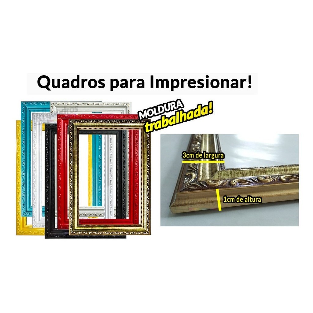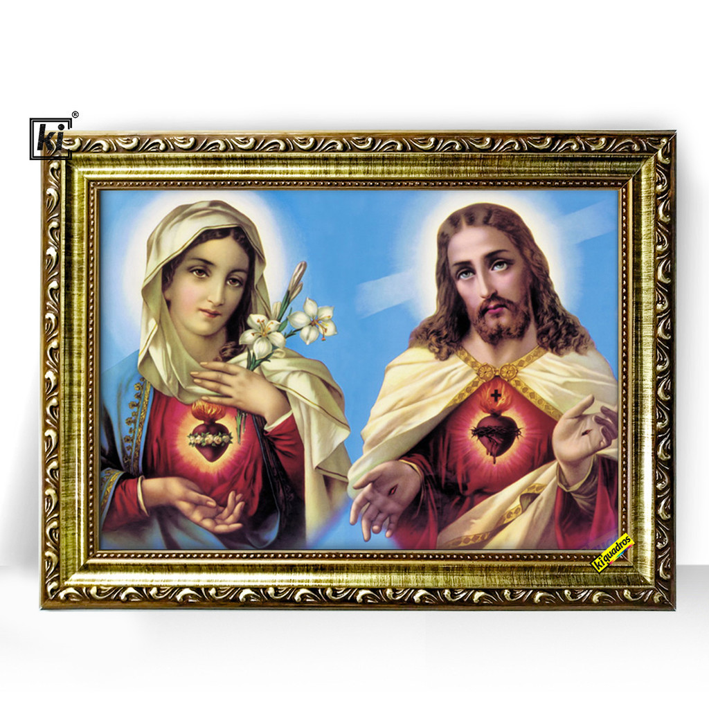 Quadro Moldura Trabalhada Sagrado Coração Maria Jesus 47x35cm