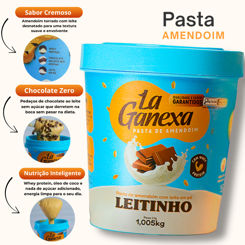 Pasta De Amendoim Leitinho Com Whey Protein La Ganexa Lançamento