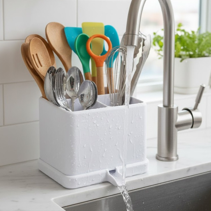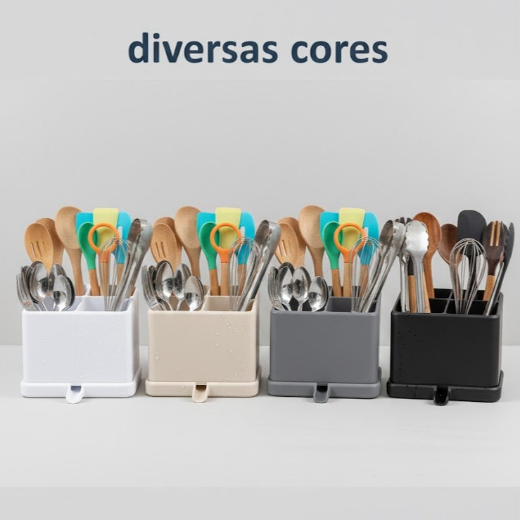 Organizador Escorredor De Agua Talheres Utensilios de Cozinha Porta Talher Plástico 4 Divisorias
