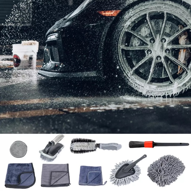 Kit De Escovas De Limpeza Automotiva Lavar Carro Rodas 9 Pcs