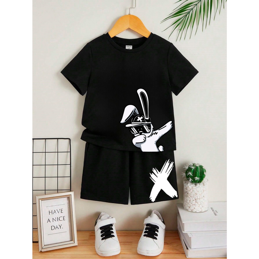 Conjunto Infantil e Juvenil Camiseta e Shorts Menino e Menina 4 ao 16 100% Algodão Preto Gospel