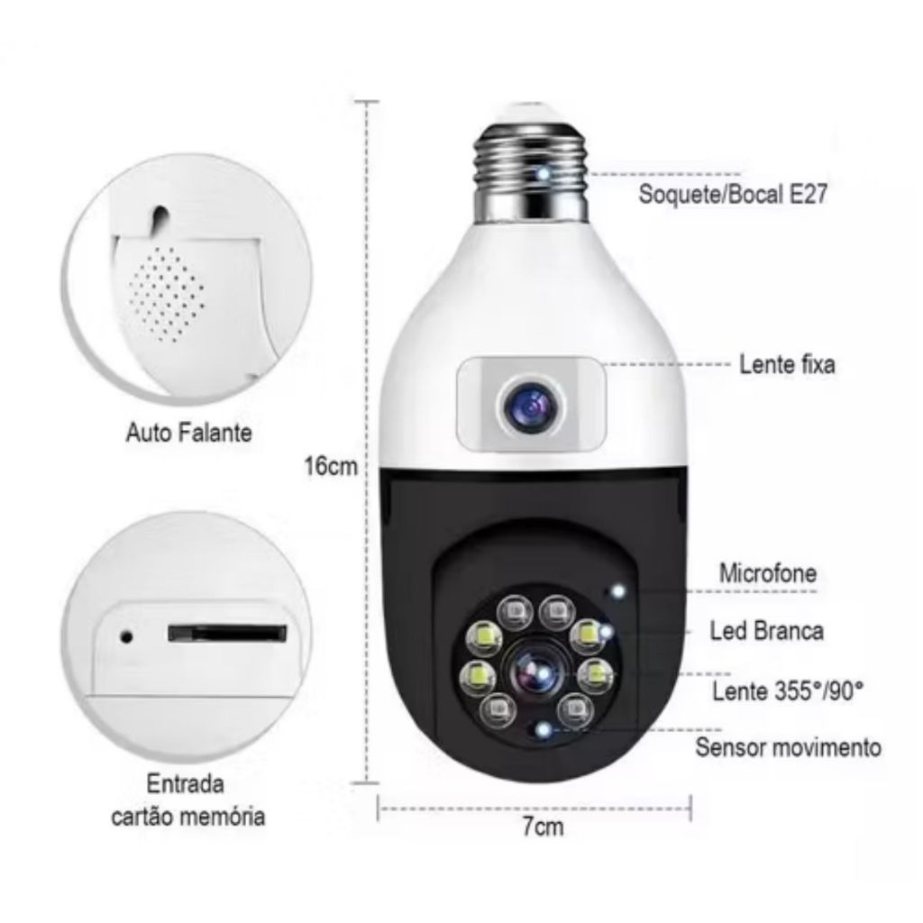 Câmera de segurança WI-FI Lente Dupla Inteligente com Visão Noturna e Áudio Bidirecional Yoosee Icsee - Bivolt