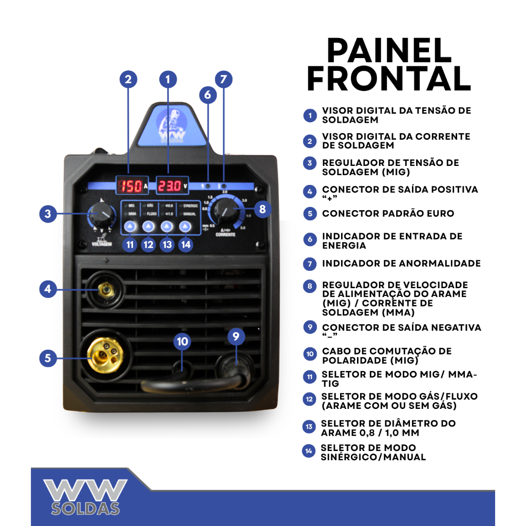 MÁquina De Solda Multiprocesso Mig Com ou Sem Gás, Tig, Eletrodo 150A 110V/220V WWSoldas