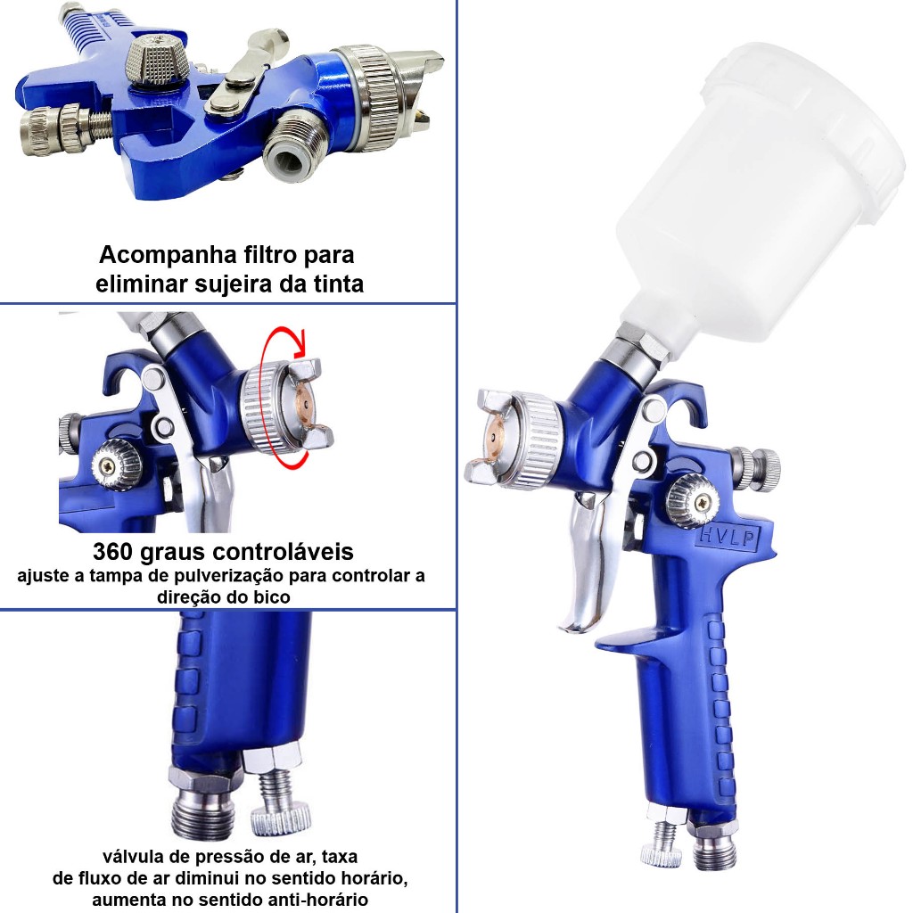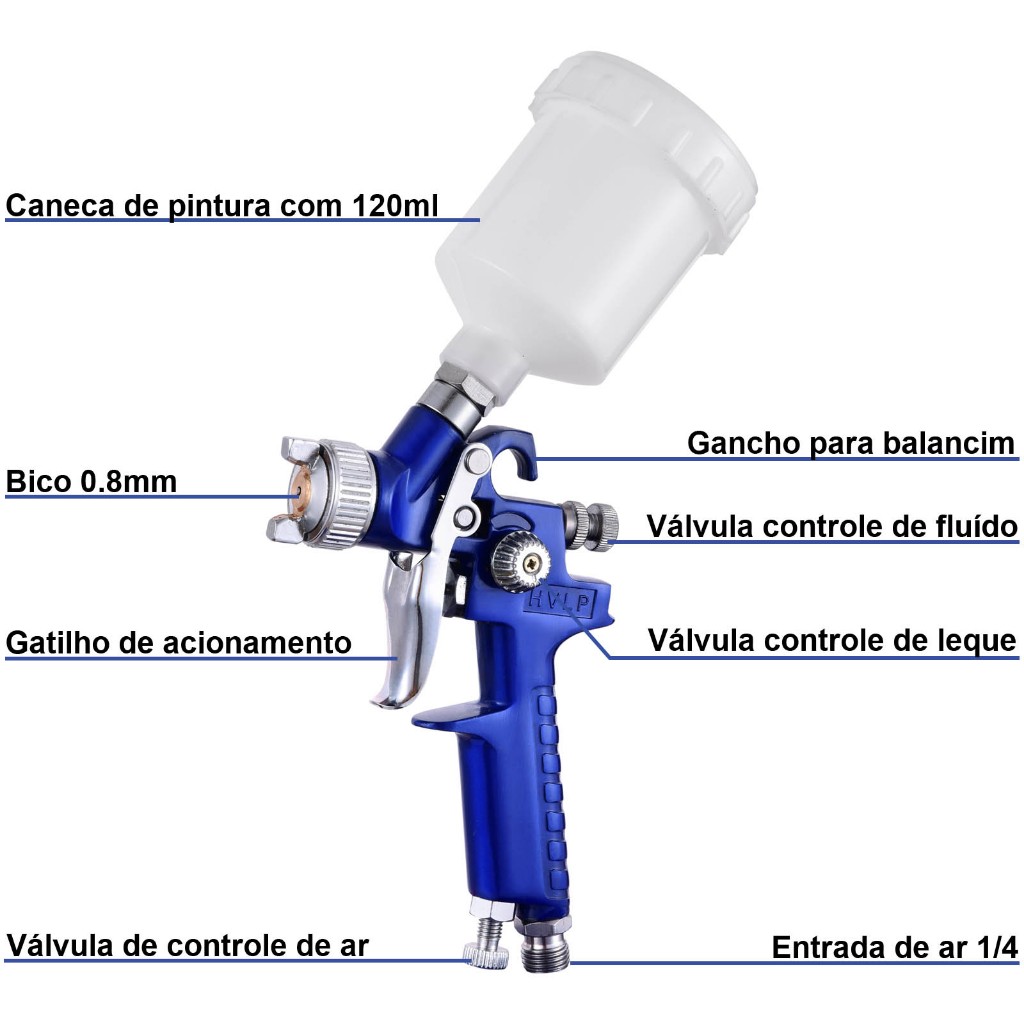 Pistola De Pintura Bico 0.8mm Gravidade Profissional Kit 2 Peças WWSoldas