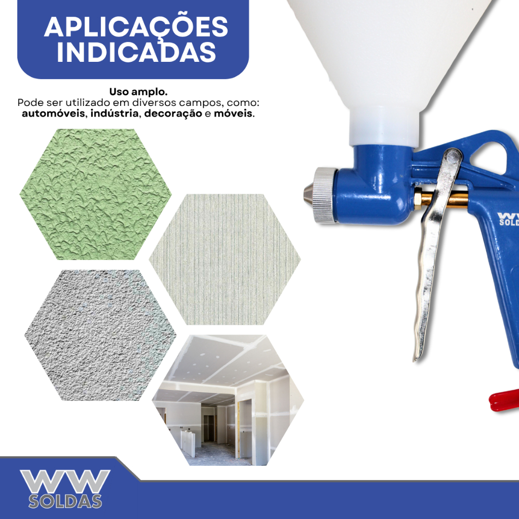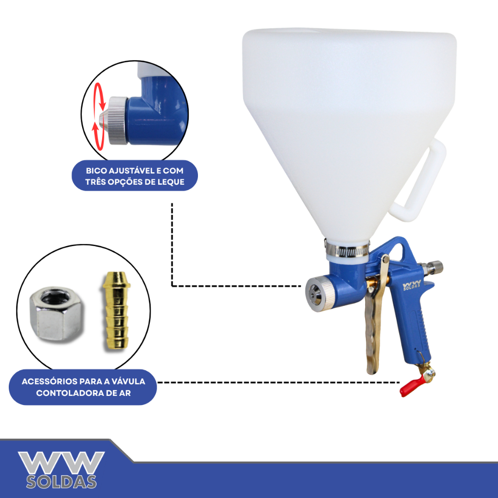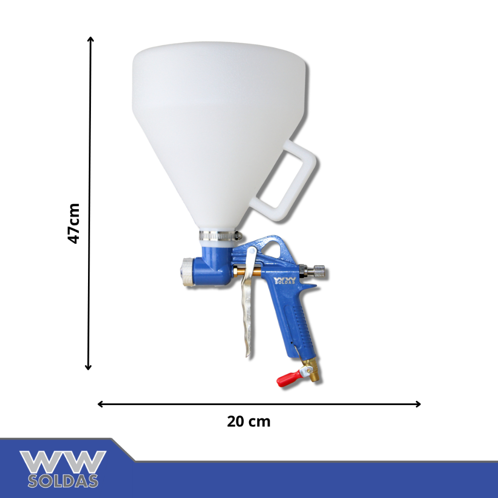 Pistola De Textura Chapisco Grafiatos Com 3 Bicos 4mm / 6mm / 8mm E Funil 5 Litros Tp-5000 Profissional Wwsoldas