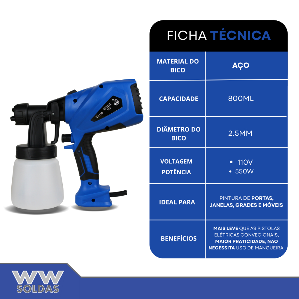 Pistola De Pintura Elétrica Bico De Aço 550w Ws880 110v