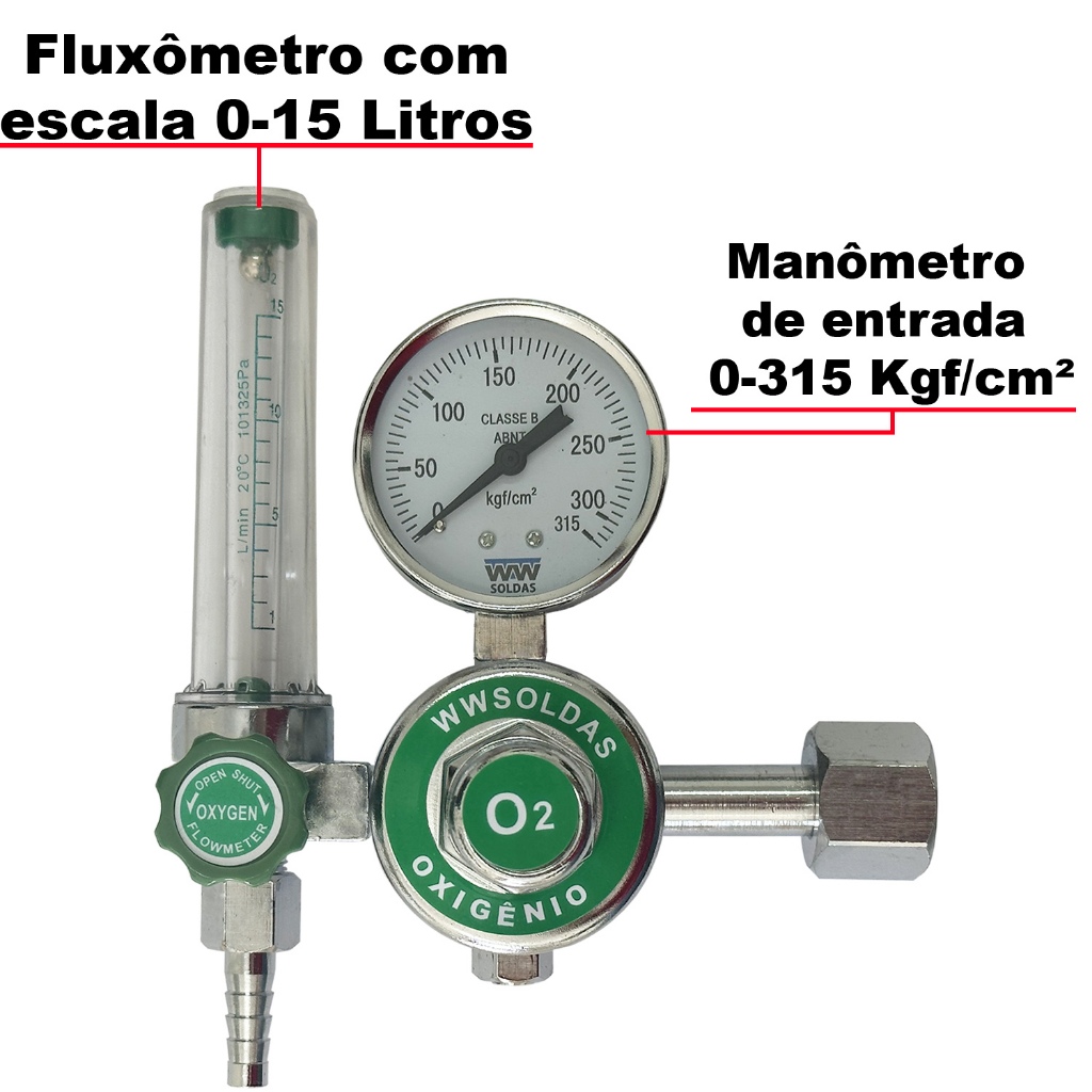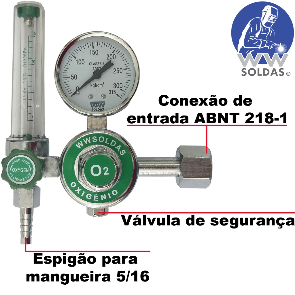 Válvula Reguladora de Pressão Com Fluxômetro Para Oxigênio W32 WWSoldas