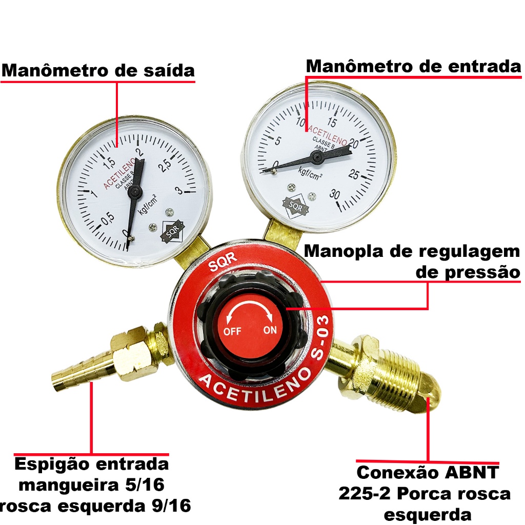 Regulador De Acetileno Para Ppu Maçarico Solda Sqr