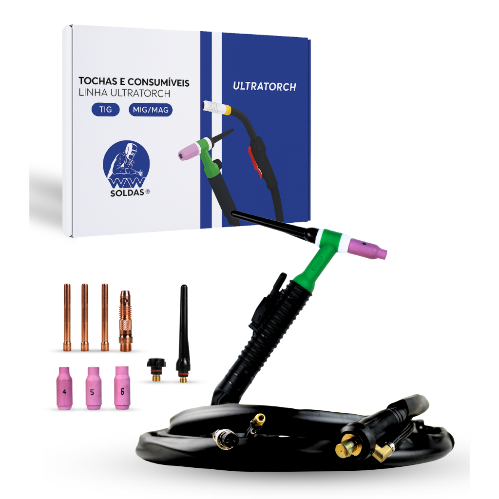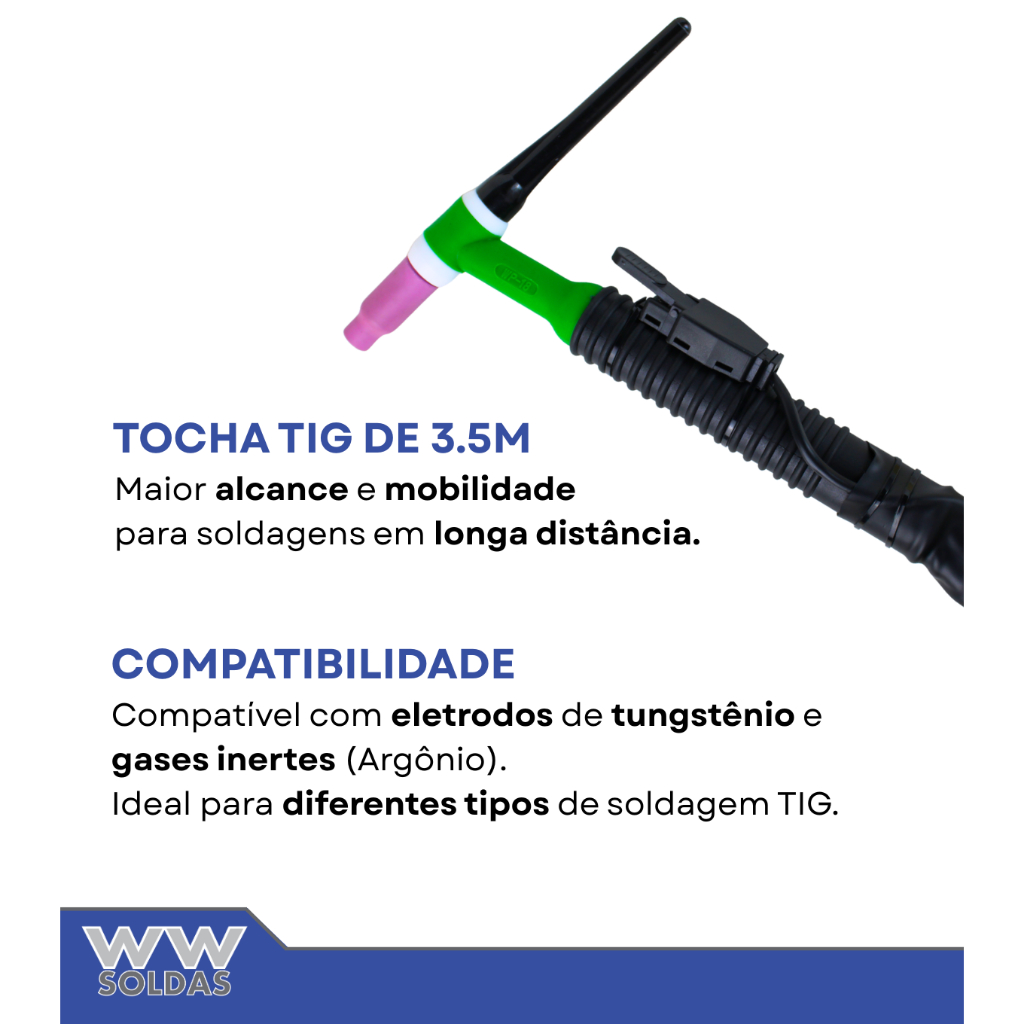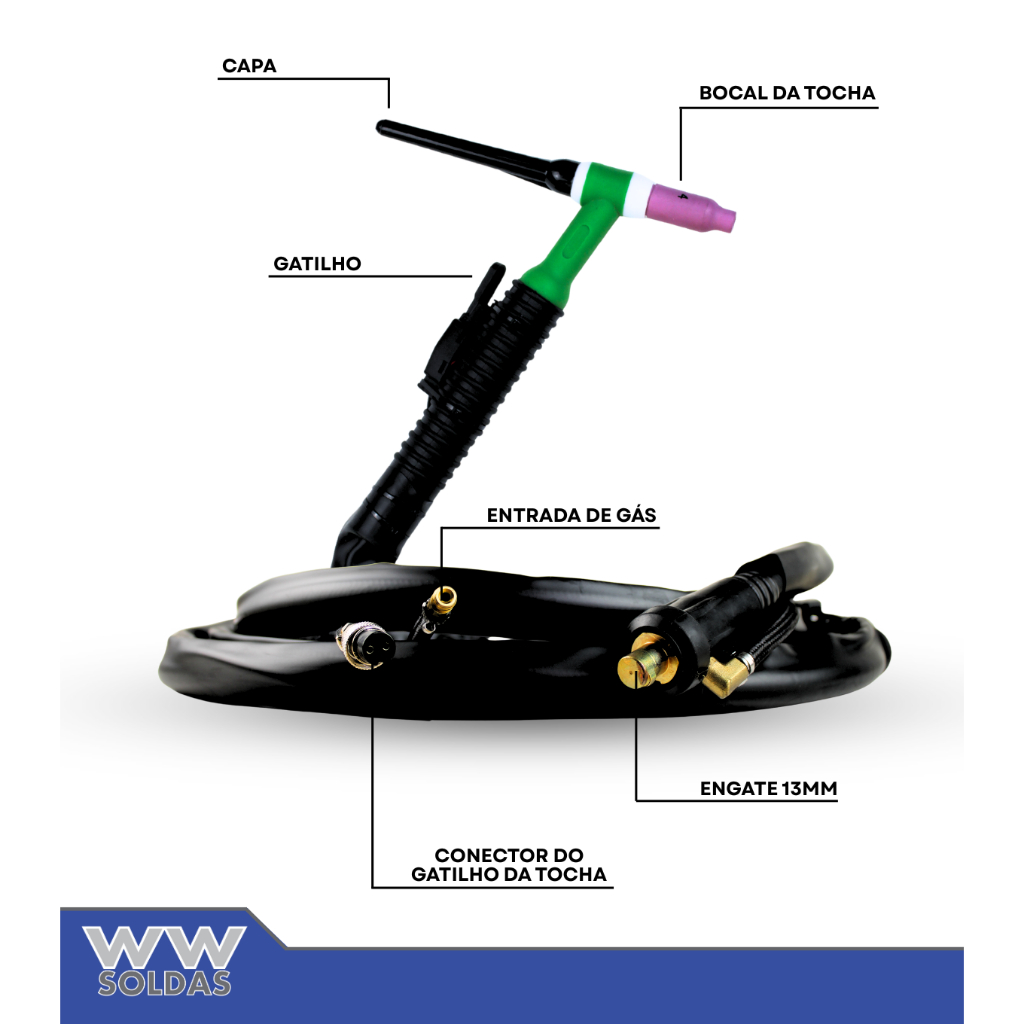 Tocha Solda Tig HW26 Com Gatilho E engate de 13mm cabo de 3.5 ou 7 Metros WWSoldas