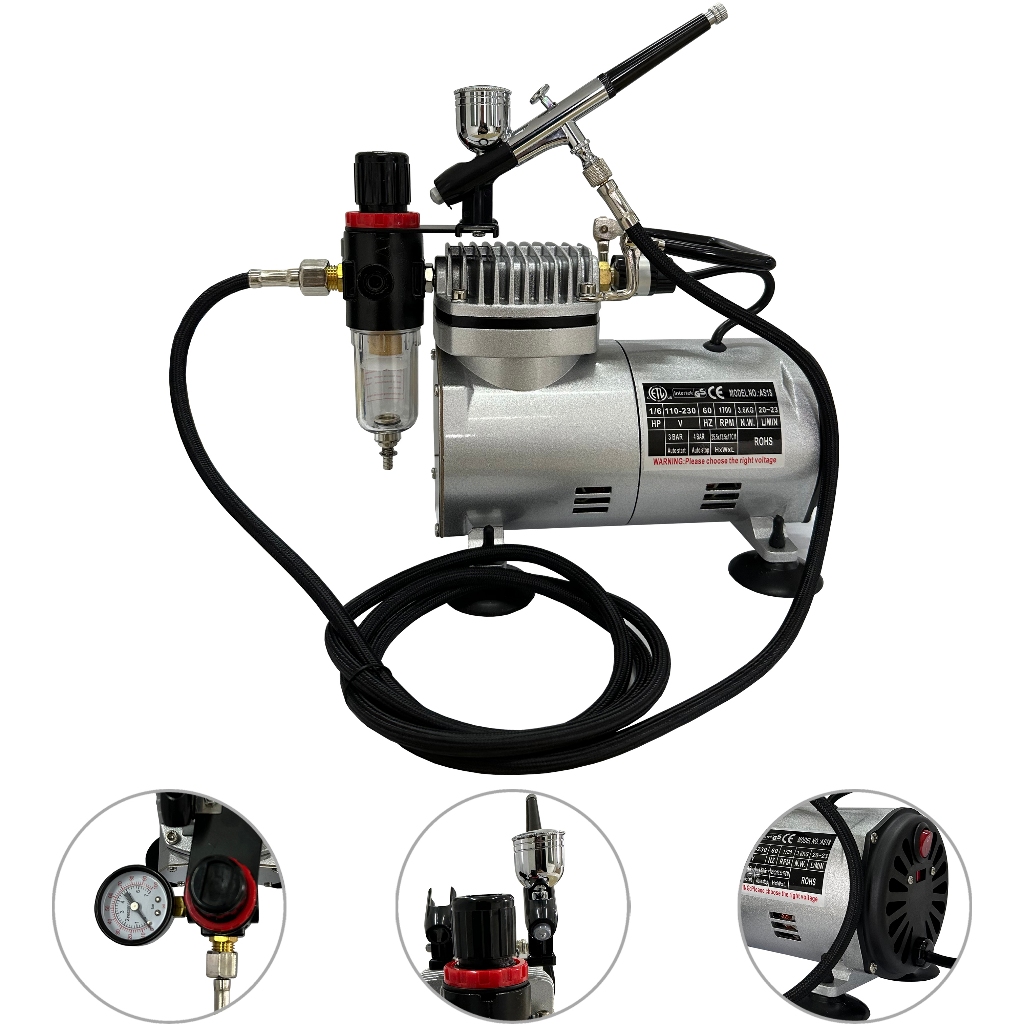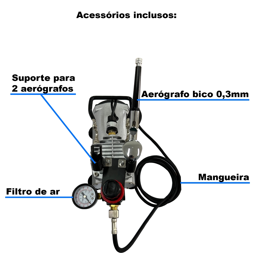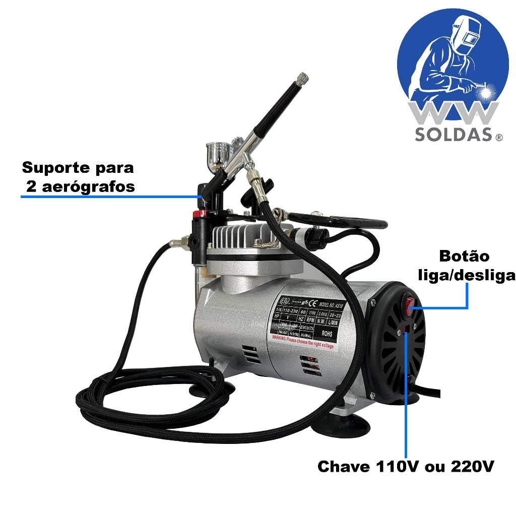Aerografo Compressor Profissional Bivolt 110V/220V Com Mangueira e Aerógrafo Dupla ação WWS