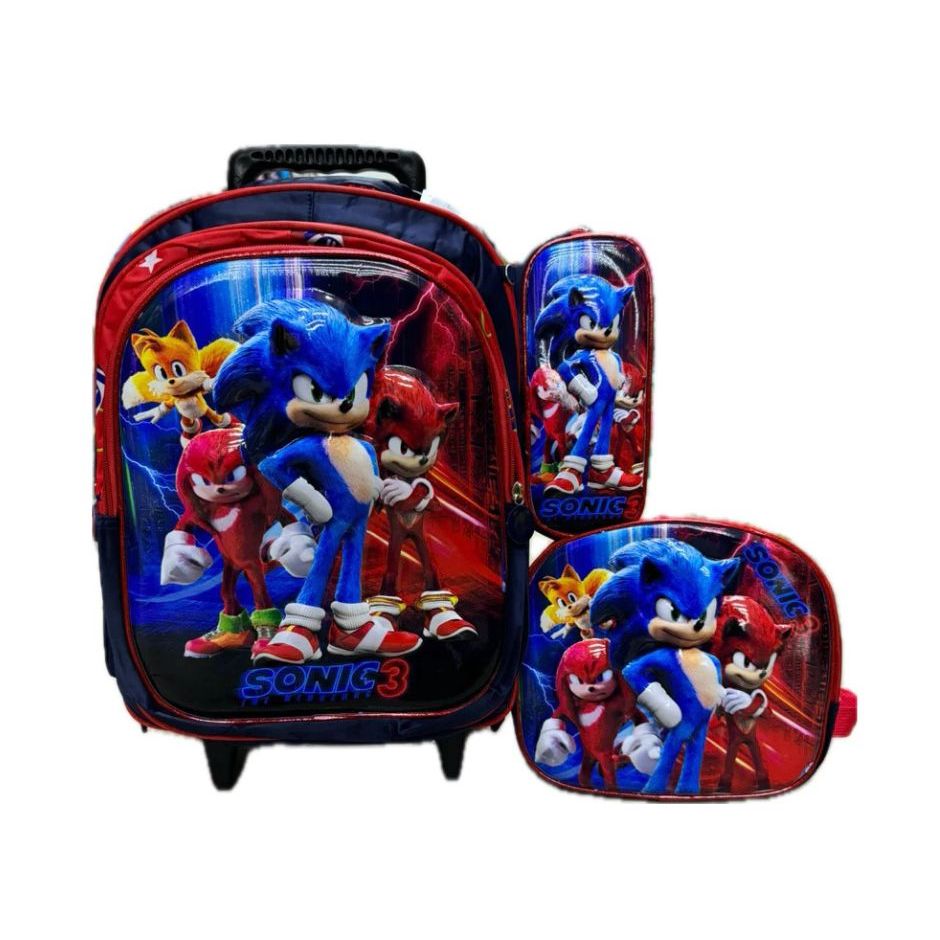 kit mochila 3D infantil rodinha lancheira térmica estojo Menino Sonic, Homem Aranha, Naruto