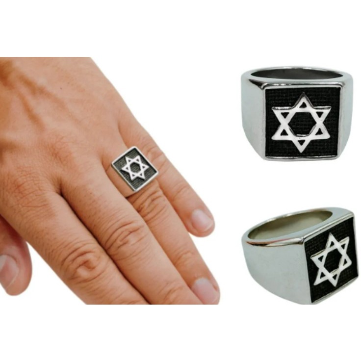 Anel masculino aço inoxidável quadrado modelo estrela de davi não escurece