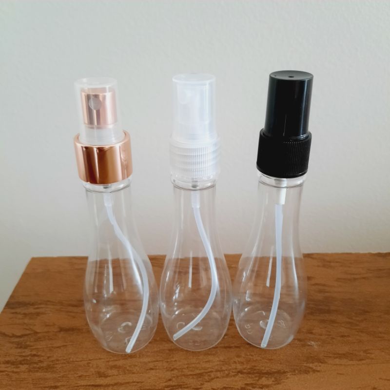 3 Frascos pet boliche 60ml com válvula spray rosé gold, transparente ou preta.