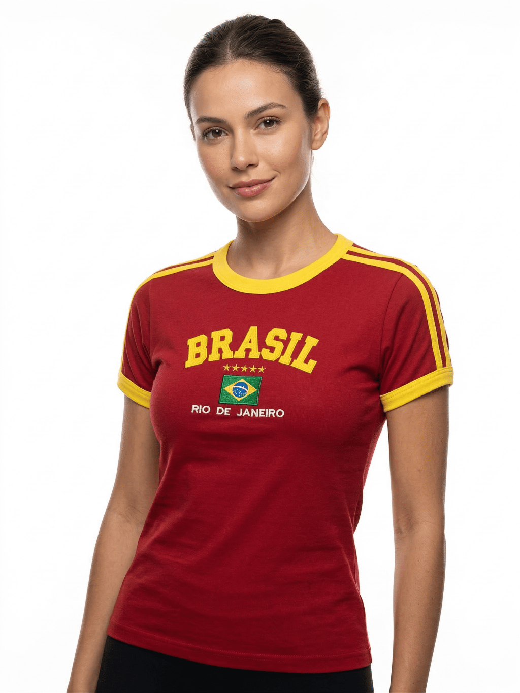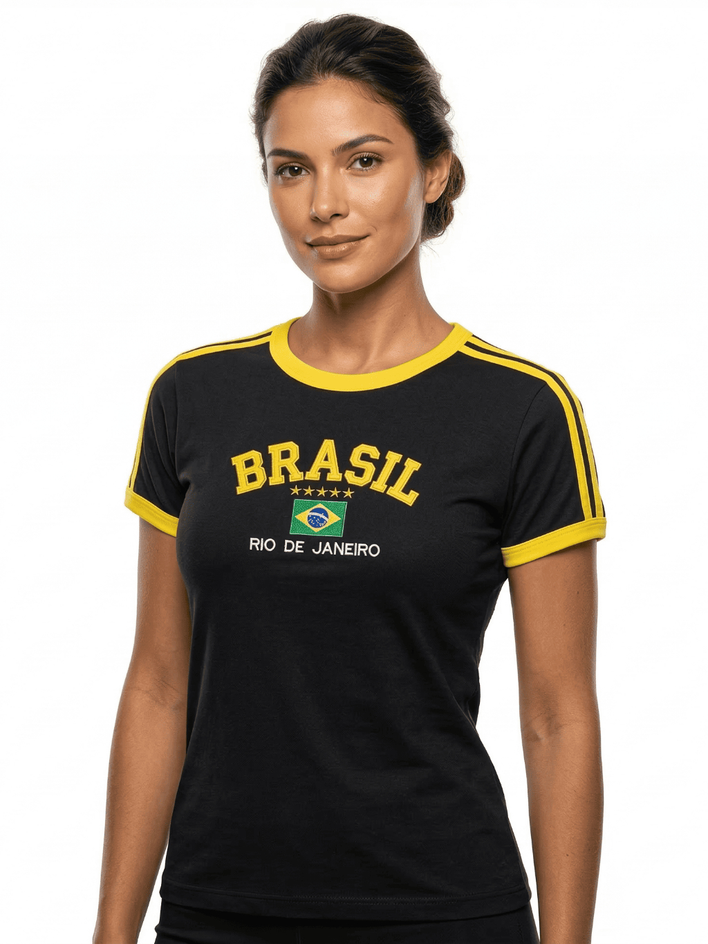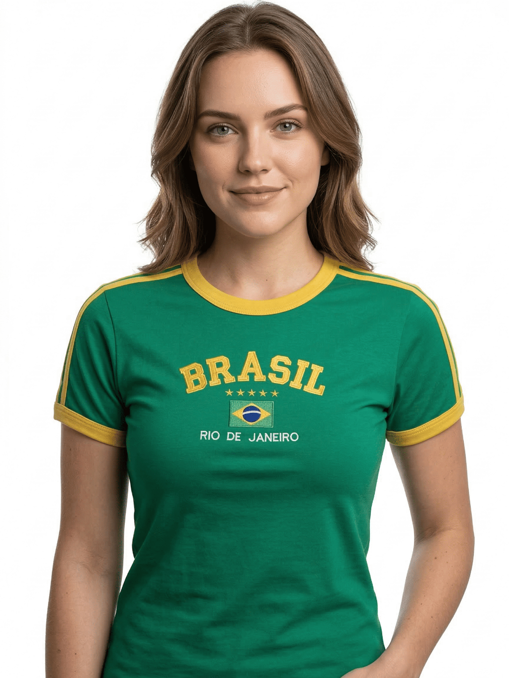 Camisa Brasil Bordada BabyLook Feminina